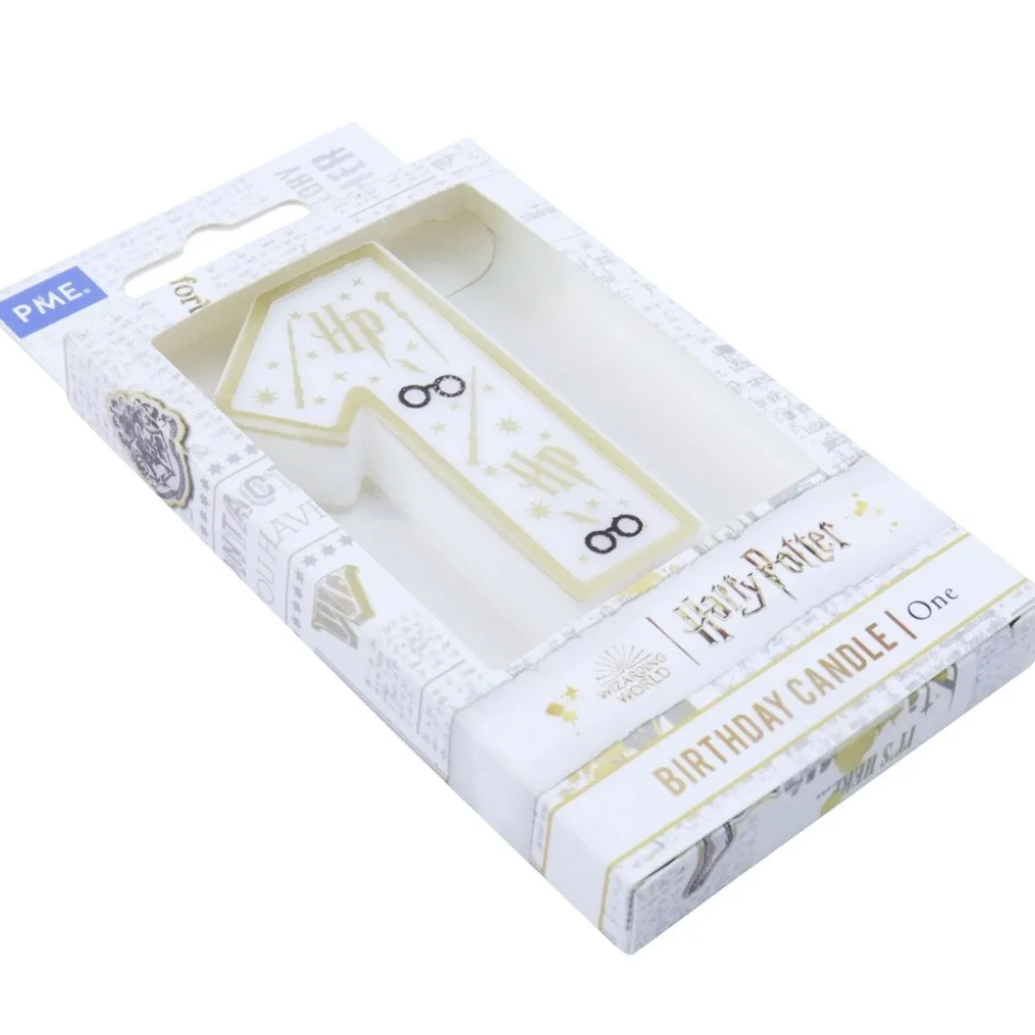 Het PME Harry Potter Taartkaarsje 1 is super leuk voor alle Harry Potter fans! De kaars heeft een witte kleur met daarop Harry Potter symbolen afgebeeld. Perfect voor themafeesten en verjaardagen. Prik ze bijvoorbeeld in taarten, cupcakes of desserts. De afmeting van de kaars is 3,8 cm bij 7 cm, dit is exclusief de houtenprikker.