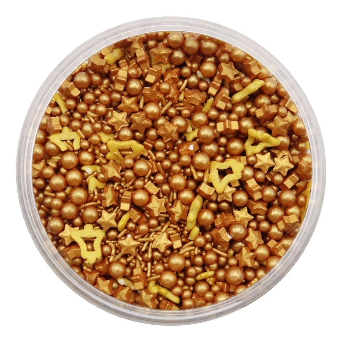 - Verpakking: brede tub, gemakkelijk om bijvoorbeeld je geglazuurde donut of opgespoten cupcake direct in de sprinkles te dippen.