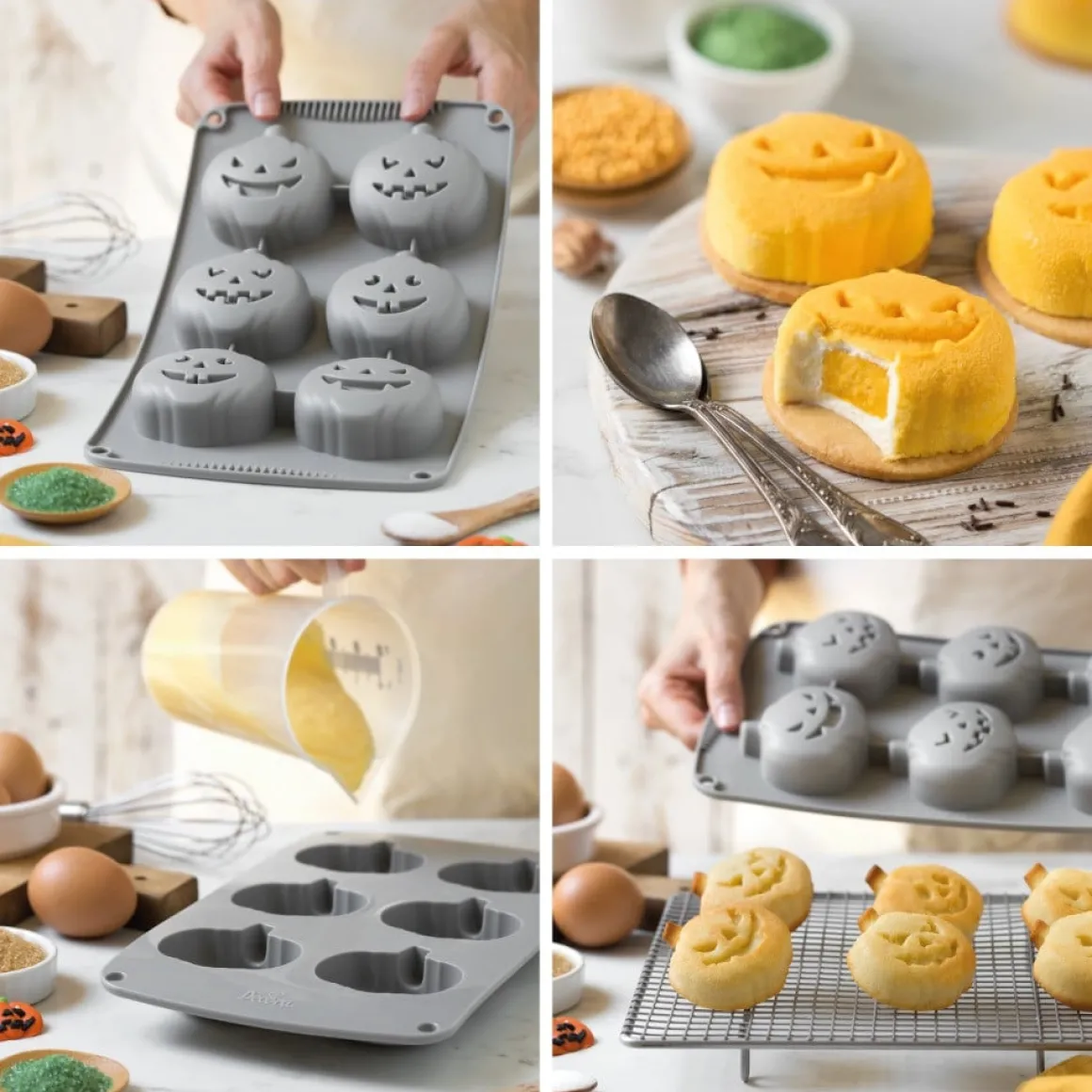 Bij Halloween zijn pompoenen natuurlijk niet weg te denken. Met deze mal gemaakt van siliconen maak je leuke kleine pompoentjes voor een Halloween feestje of om uit te delen aan kinderen die langskomen. Leuk voor cake, brownie, chocolade etc.