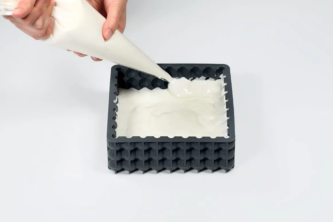 Met deze bakvorm bak je een prachtige vierkante cake met bollingen op de boven- en zijkanten.