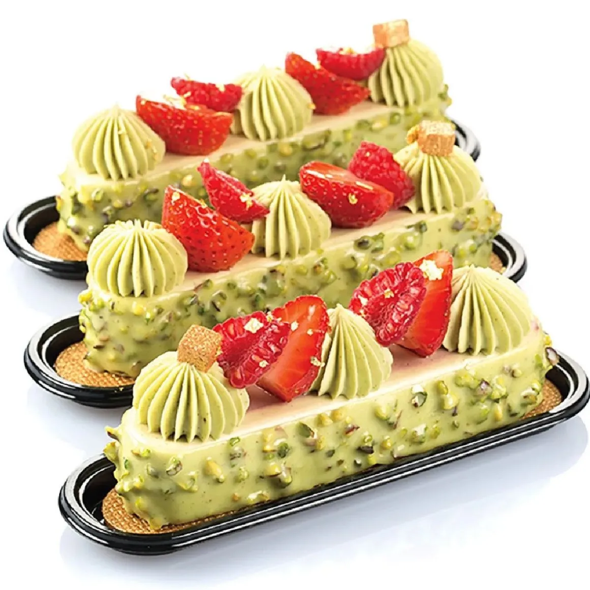 De Silikomart Gebakschoteltje Eclair Zwart 14×3,2cm 100st is perfect om jouw verfijnde gebakjes op te presenteren! Uiteraard ideaal om allerlei soorten eclairs op te dienen, maar ook geschikt voor andere langwerpige baksels. Leuk om gebakjes, chocolaatjes of desserts op te serveren.