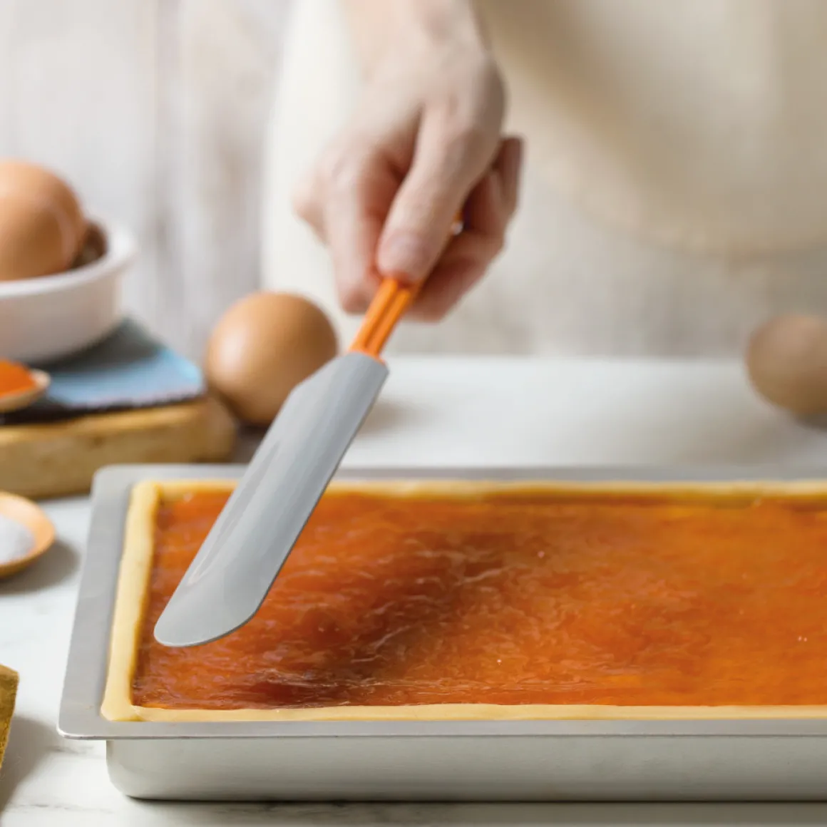 Moeite om grote oppervlakken glad te strijken en restdeeg uit een hoge bak te halen? Dan is de Spatel Siliconen Lang een oplossing voor je probleem! Deze spatel is essentieel voor het mengen van elk type bereiding, van zoet tot hartig. Een handig aanvulling op je keukengereedschap!