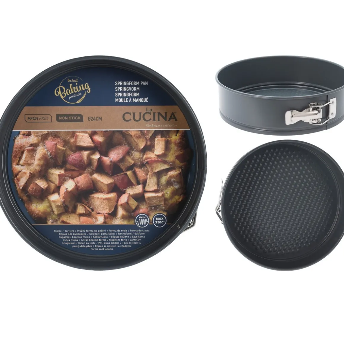 Een springvorm is een van de meest gebruikte bakvormen. Deze springvorm heeft een non-stick coating en is geschikt voor in de oven tot temperaturen van 230C.