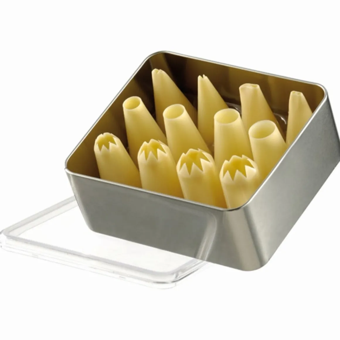 Met deze kunststof spuitmondjes set kun je echt alle kanten op. De doos bevat 12 verschillende grote spuitmondjes (6cm hoog), met een kartel, gladde en garneer sluitopening. Je kunt de spuitmonden gebruiken om prachtige toeven te maken op cupcakes, koeken, taarten of andere heerlijke creaties. Naast ze voor toeven te gebruiken kun je ze ook gebruiken om prachtige decoraties te maken.