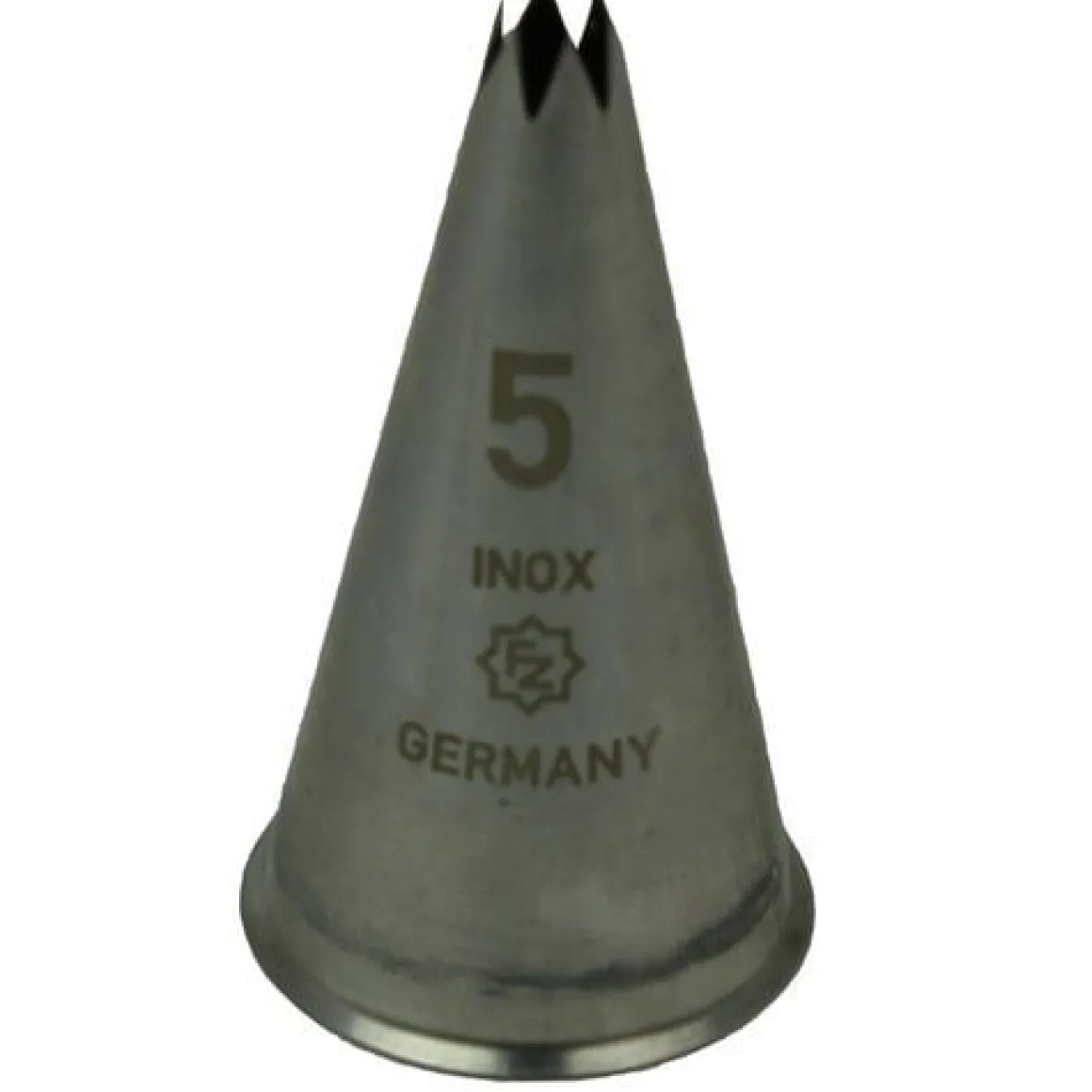 Een zes tands gekarteld spuitmondje, ook wel een ‘open ster’ spuitmond genoemd. Door de kartels die zich aan de sluitkant bevinden geef je een toef op je cupcake, taart of andere creatie een leuk gekarteld effect.