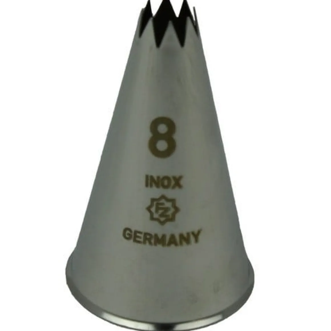 Spuit je cupcakes, taarten, cakes of andere creaties op met behulp van deze 8 tands spuitmond. Je kunt een spuitzak vullen met een vulling naar wens en er met de spuitmond prachtige toeven van maken. Maak je creaties helemaal af door ze te decoreren met andere decoraties, zoals sprinkles, hagelslag, suiker decoraties, chocolade decoraties en meer.