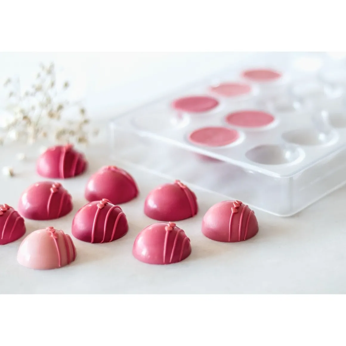 De Städter Bonbonvorm Rond (24) Ø30mm bevat 24 holtes die een ronde, gladde vorm hebben. Deze holtes hebben een doorsnede van circa 3 centimeter. Een perfecte mal om allerlei chocolade lekkernijen in te maken. Maak bijvoorbeeld massieve chocolaatjes van diverse soorten chocolade of creëer heerlijke bonbons met een vulling naar wens. Lekker met onder andere caramel, hazelnoot of ganache vulling.