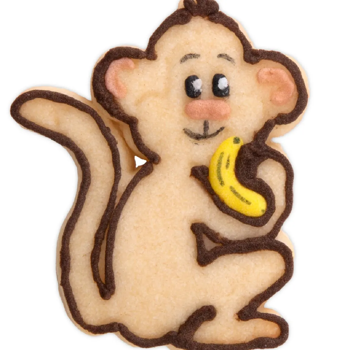 De Städter Plunger Cutter Aap 6 cm is een leuke uitsteker in de vorm van een vrolijke aap. Met de plunger druk je niet alleen de vorm uit, maar breng je ook direct details aan in het deeg of fondant.