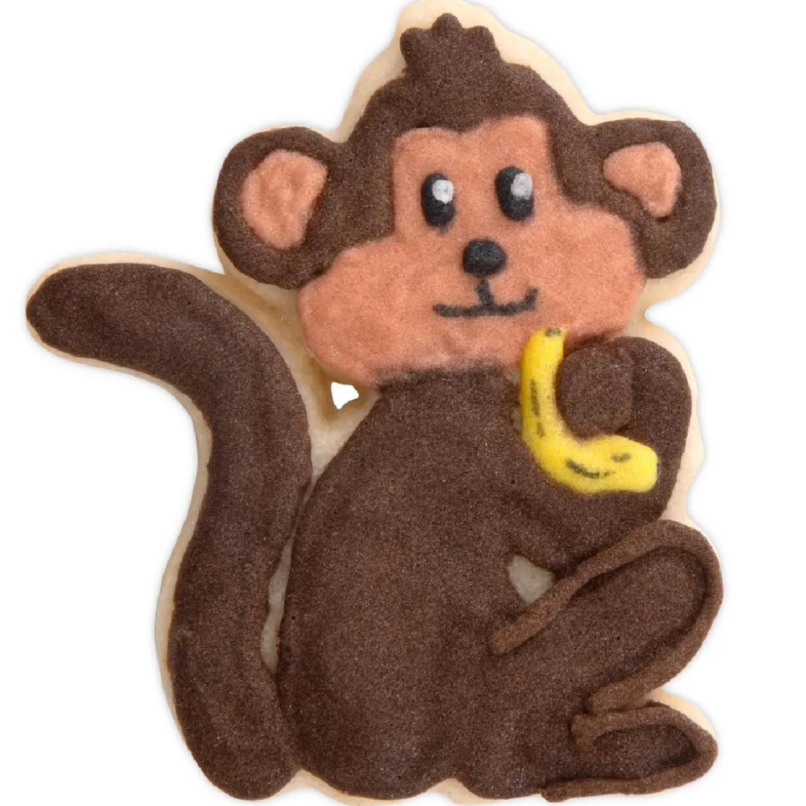 Met deze uitsteker maak je speelse koekjes of decoraties van fondant en marsepein in apenvorm. Perfect voor kinderfeestjes, thema-taarten of cupcakes met een jungle- of dierenthema. De details kunnen eenvoudig worden ingekleurd met glazuur of eetbare verf.