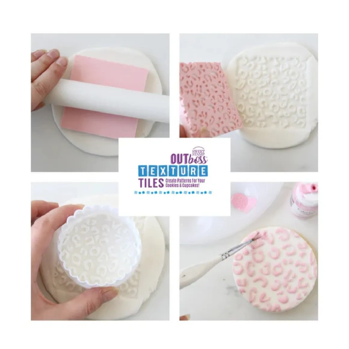 De Outboss stempel is eenvoudig toe te passen: druk de siliconen plaat op uitgerolde fondant of gum paste, rol er met een roller overheen, en het gedetailleerde ontwerp komt prachtig naar voren. Daarna kun je het patroon eventueel inkleuren met edible paint Gebruik een uitsteker om het ontwerp in de juiste vorm te snijden voor je koekje of cupcake.