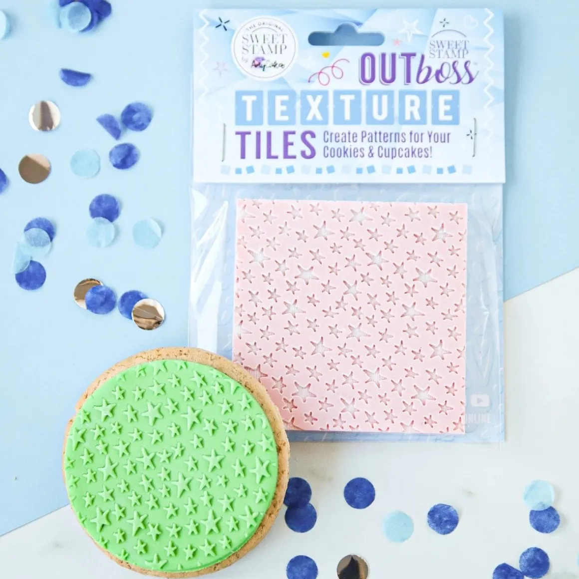 Voor het beste resultaat rol je je fondant of gum paste uit tot ongeveer 3 mm dikte. Plaats de Outboss vervolgens op de pasta en rol er overheen met een roller. Je kunt het zo laten of de sterren benadrukken met edible paint, dust of shimmer spray.