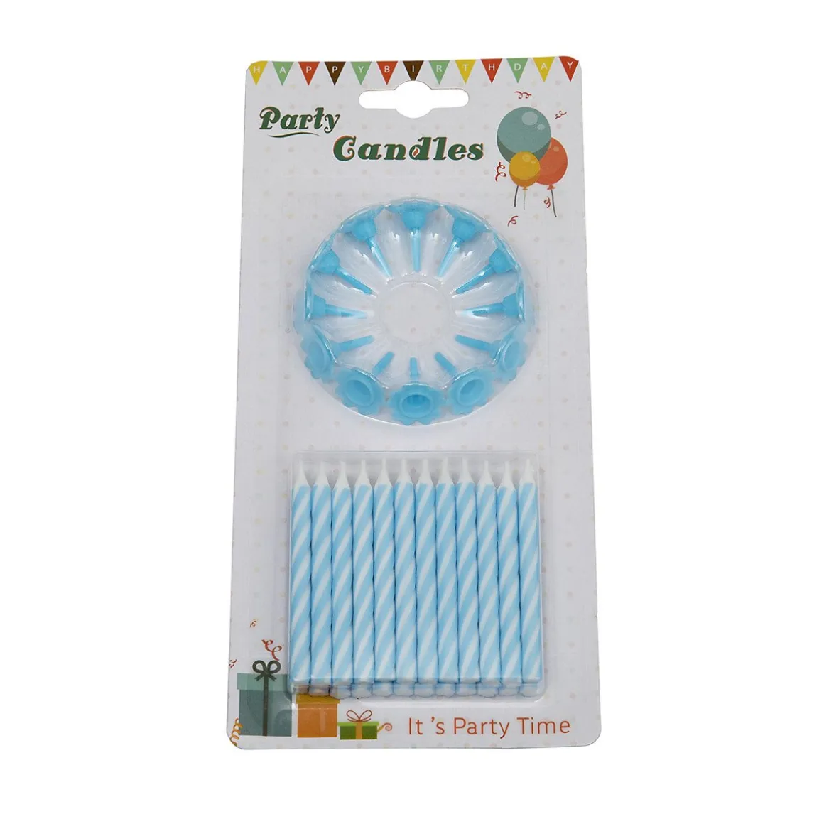 Een verjaardagstaart is niet af zonder taartkaarsjes. Met deze mooie blauwe taartkaarsjes maar je een verjaardagstaart compleet. De kaarsjes hebben een spiraal design en hebben allemaal een houdertje.