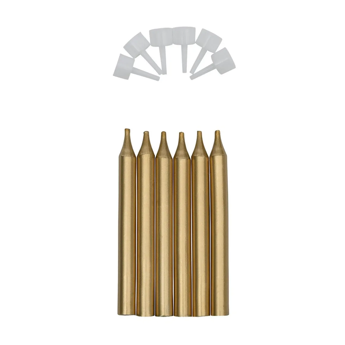 Deze prachtige taartkaarsjes zijn perfect voor het afmaken van een verjaardagstaart. De kaarsjes hebben een mooie glanzende gouden kleur en beschikken over een houdertje.