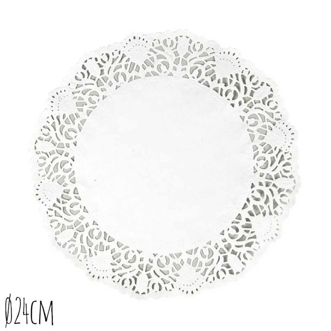 Een pak van 250 witte taartranden met een diameter van Ø24cm. Deze taartranden zijn voor decoratief gebruik onder een taart. De taartranden zijn van dun kwaliteitspapier en bestand tegen temperaturen van 0℃ tot 70℃. We bieden vele soorten en maten aan, variërend van Ø10cm tot Ø40cm.