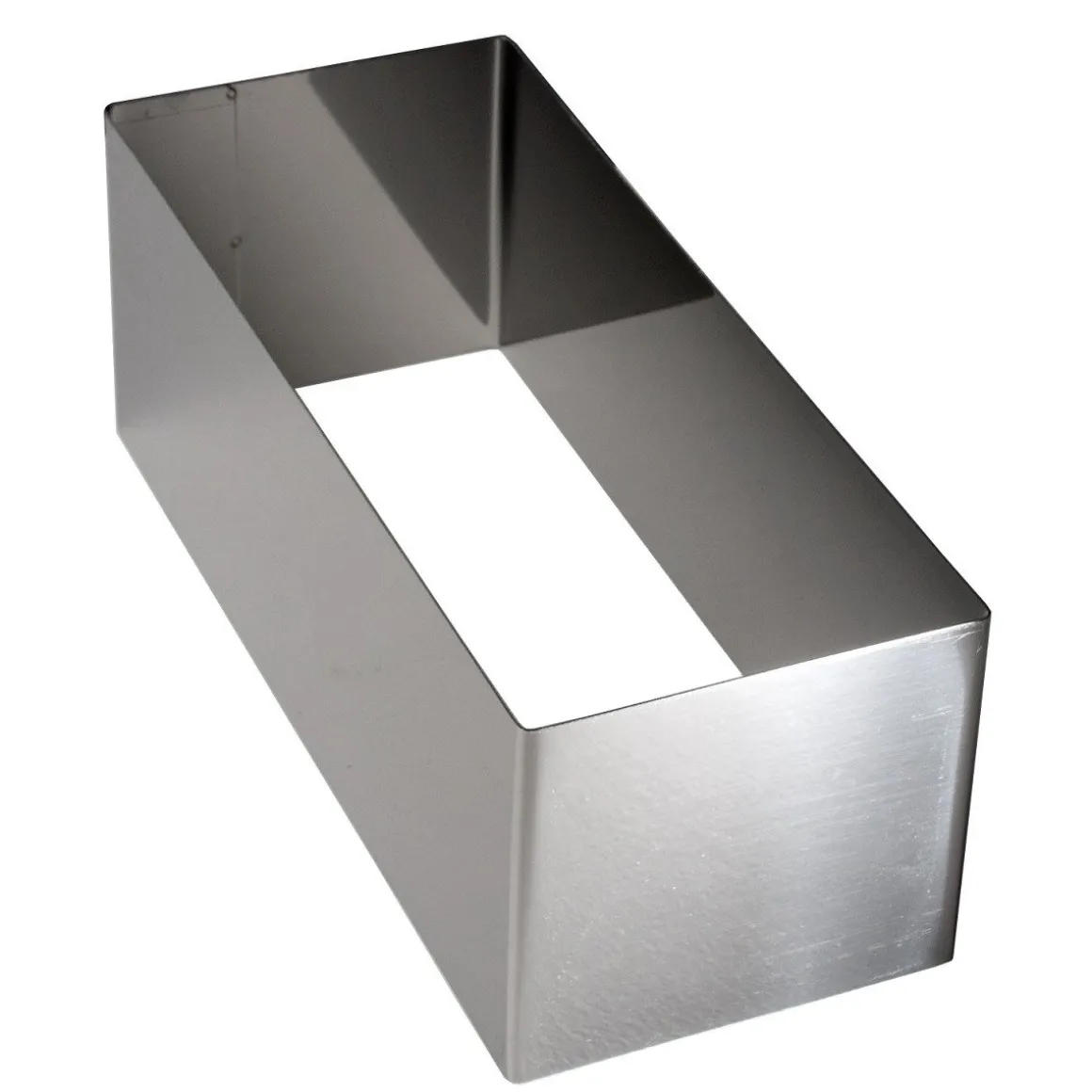 Deze rechthoekige taartring is gemaakt van roestvrij staal. Kan voor meerdere doeleinden gebruikt worden, bijvoorbeeld voor bavarois, cake of kapsel/biscuit.