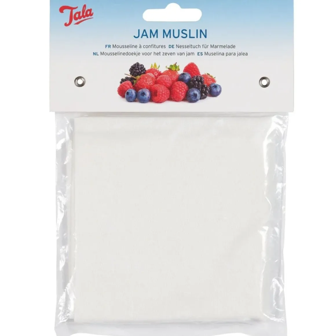 De Tala Zeefdoek 46x46cm is ideaal om diverse zelfgemaakte producten mee te zeven. Het doekje is gemaakt van 100% katoen. Ideaal om bijvoorbeeld hangop of kaas te maken, maar ook om bouillon van het vet te scheiden. Je kunt dit doek ook gebruiken om pitjes uit sinaasappelsap of jam te halen. Het zeefdoekje heeft een afmeting van 46 bij 46 centimeter.