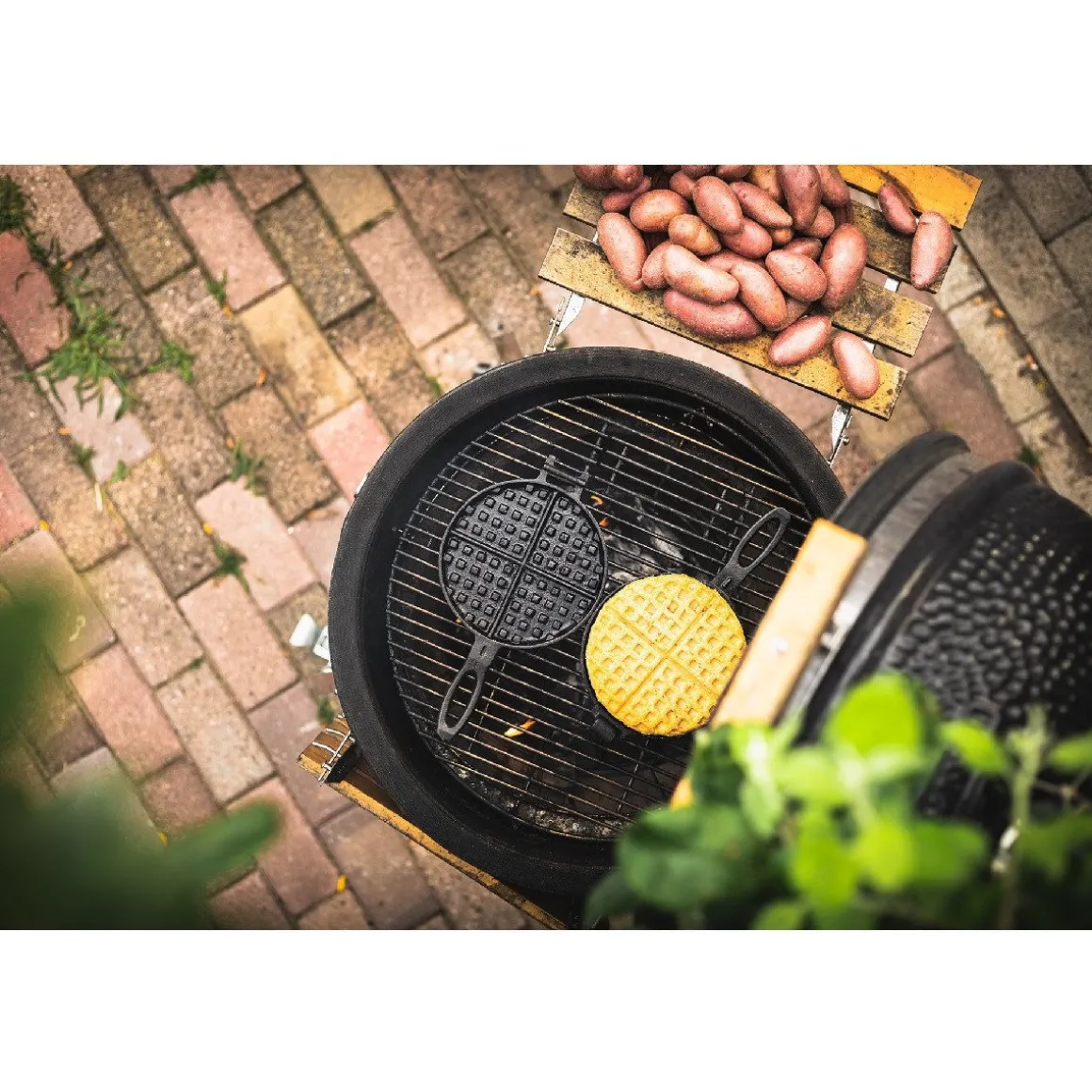 The Windmill Wafelijzer Gietijzer is gemaakt van gietijzer, wat ervoor zorgt dat de warmte goed verdeeld wordt en lang wordt vastgehouden. Dit ijzer is pre-seasoned, dit wil zeggen dat er een coating op zit, waardoor de pan beschermd wordt en niet roestig wordt geleverd. Na aankoop is het wel belangrijk om de pan in te branden en te onderhouden met conditioner. Hierdoor behoud je de kwaliteit van de pan en wordt er een antiaanbaklaag opgebouwd. Het wafelijzer is perfect om wafels in te bakken op verschillende warmtebronnen, zowel binnen als buiten.