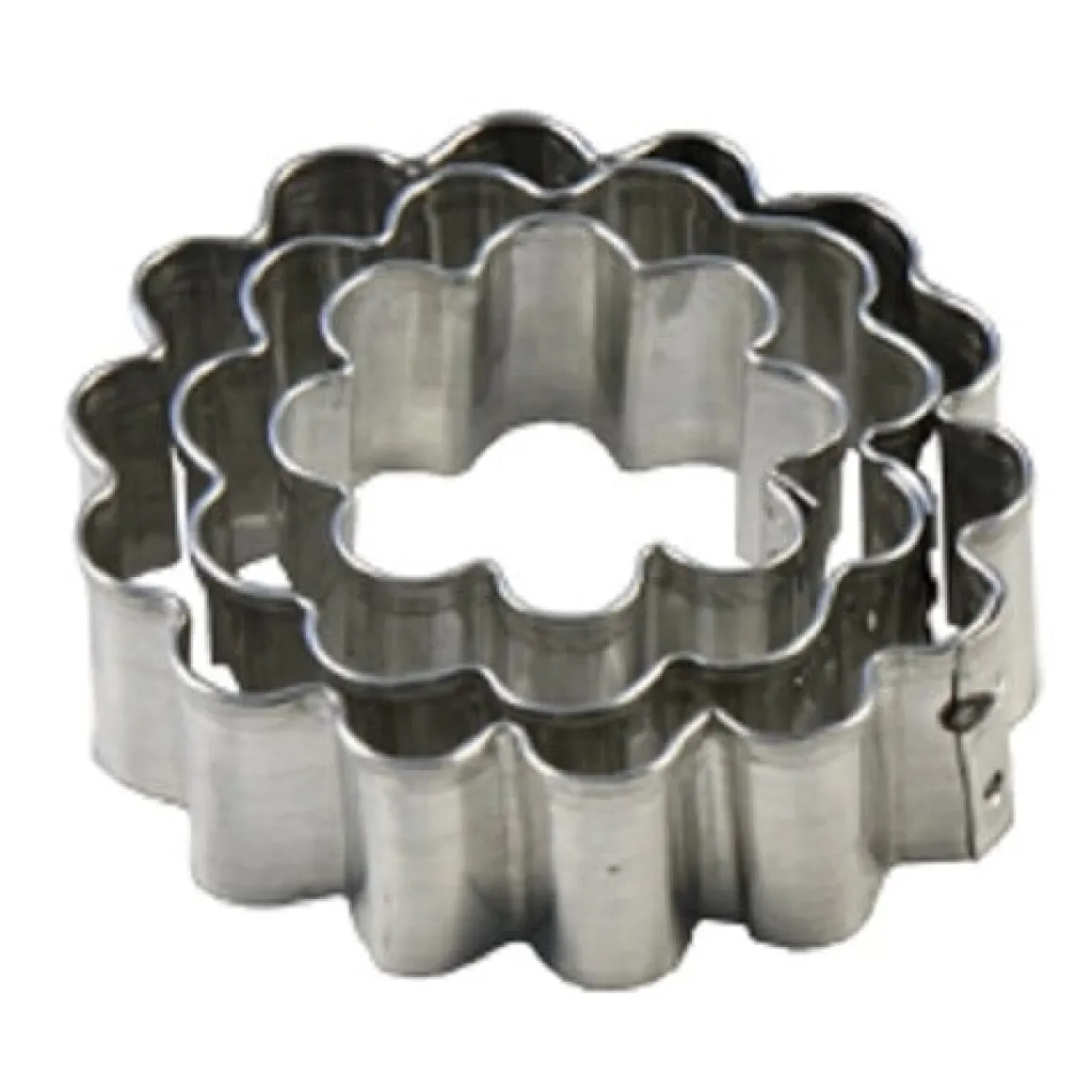 Deze 3 delige uitsteker set in een golvende vorm is ideaal voor koekjes of andere deegsoorten. De set bestaat uit 3 verschillende maten en zijn allemaal 1.7cm hoog. De uitstekers zijn gemaakt van blik en hebben een doorsnede van 3,5, 5,0 en 5,5 cm.