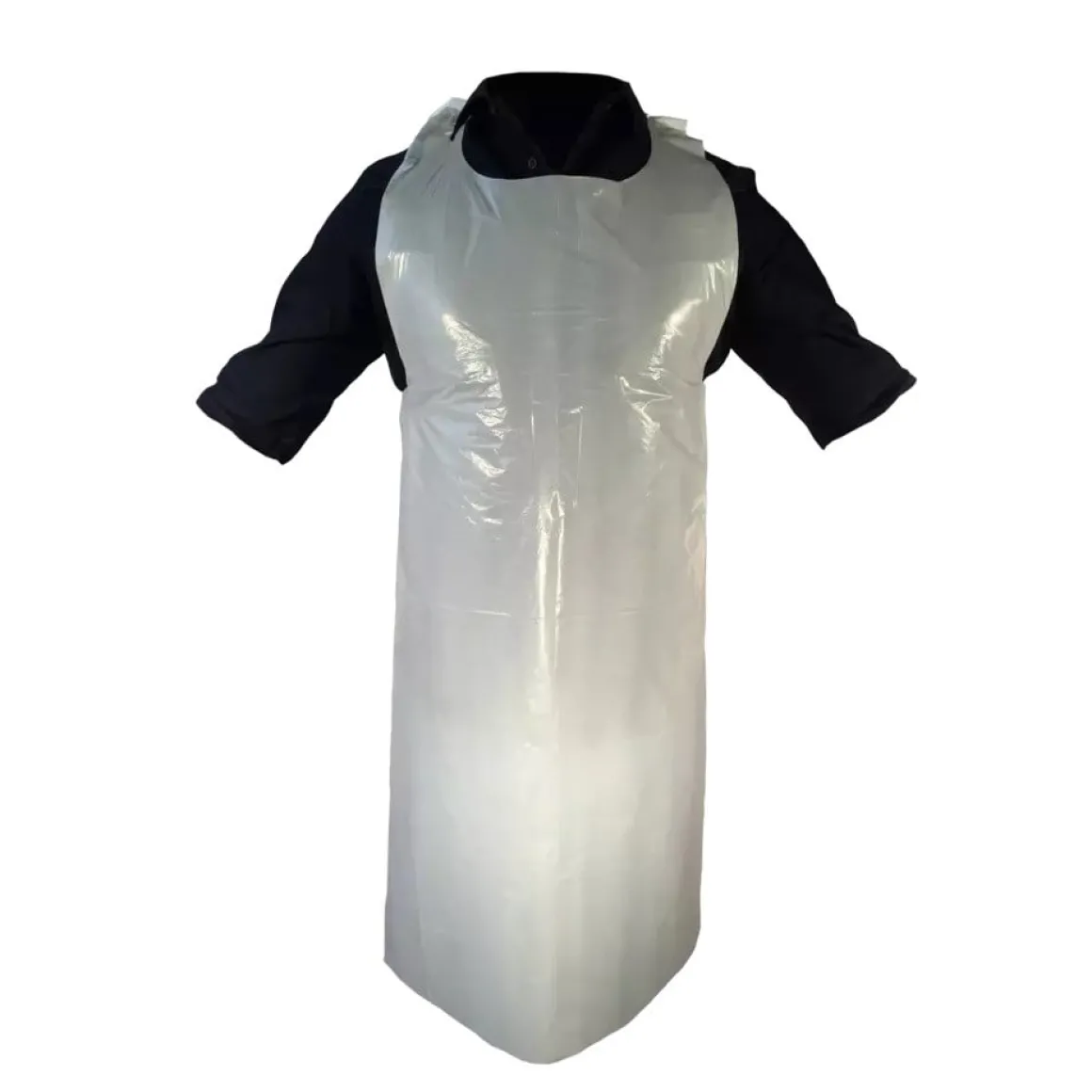 Witte disposable (wegwerp) schorten, verpakt per 100 stuks. Deze schorten zijn gemaakt van scheurvast en sterk PE.