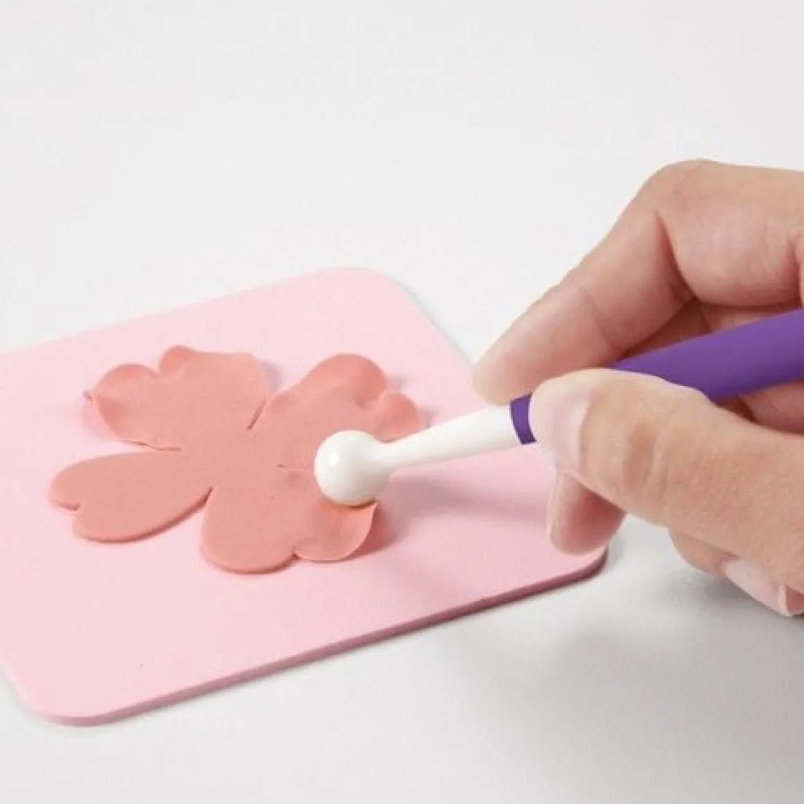 Deze set heeft een bal tool met aan de ene zijde een grote bal en aan de andere zijde een kleine bal. Deze kun je gebruiken voor het maken van ruche randen maar ook voor bijvoorbeeld bloemblaadjes en stroken. De fijne en brede kant kun je gebruiken om gestippelde of gestreepte designs te maken.