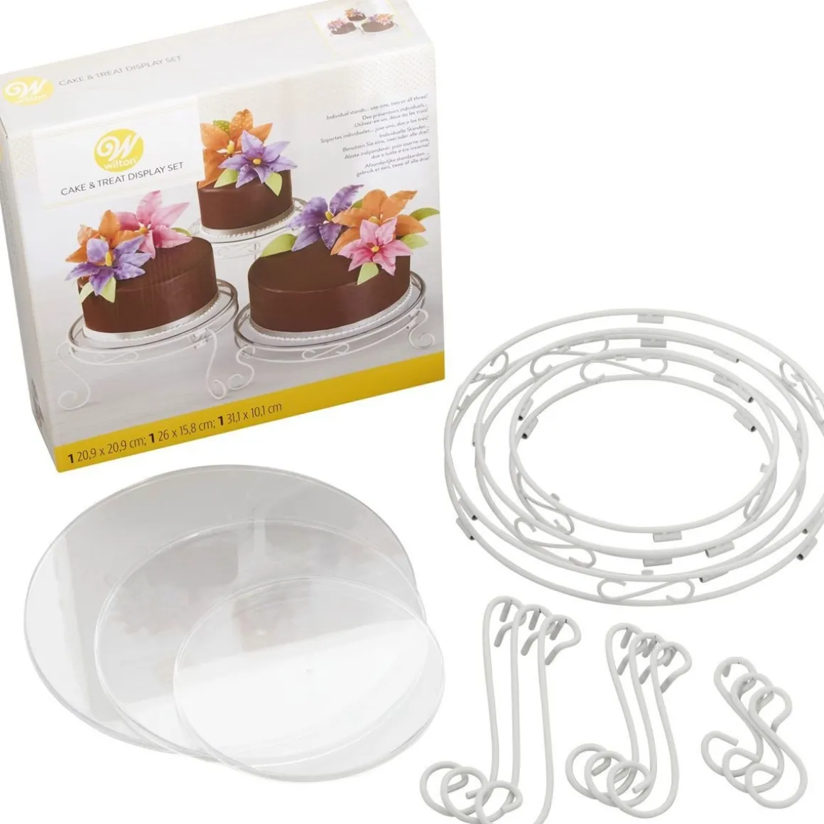 Met deze prachtige klassieke taartstandaard weet jij zonder twijfel iedereen te verrassen! De set bestaat uit drie standaards met sierlijke vormen en drie transparante plateus. De doorsnede van de plateaus zijn: 20, 25 en 30 cm.