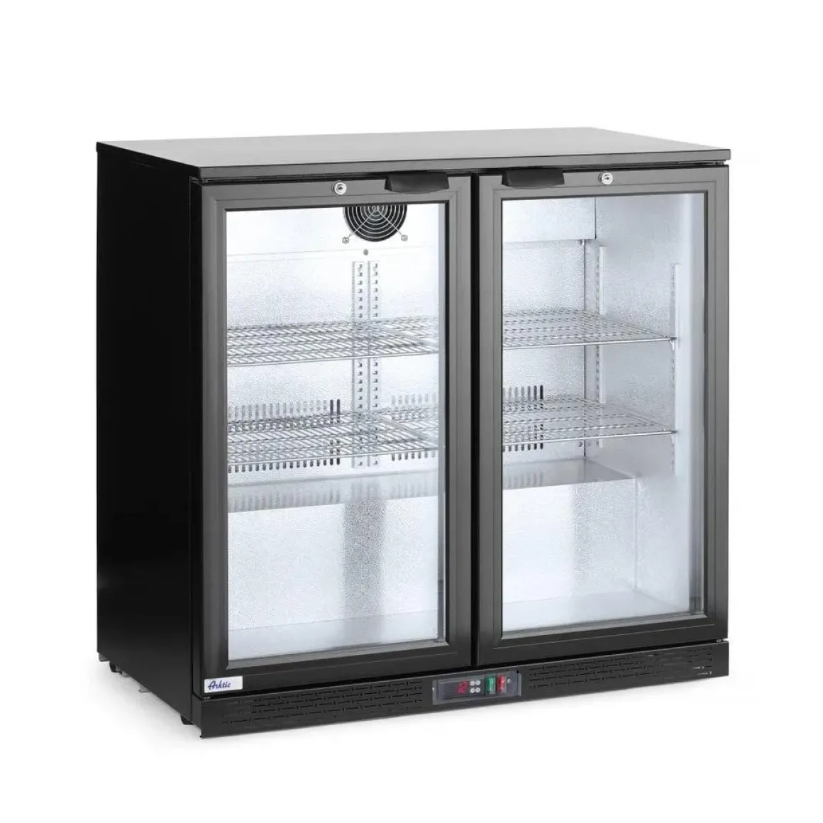Ruime barkoelkast met deuren van gehard glas. Uitgerust met LED-verlichting om producten te presenteren.
