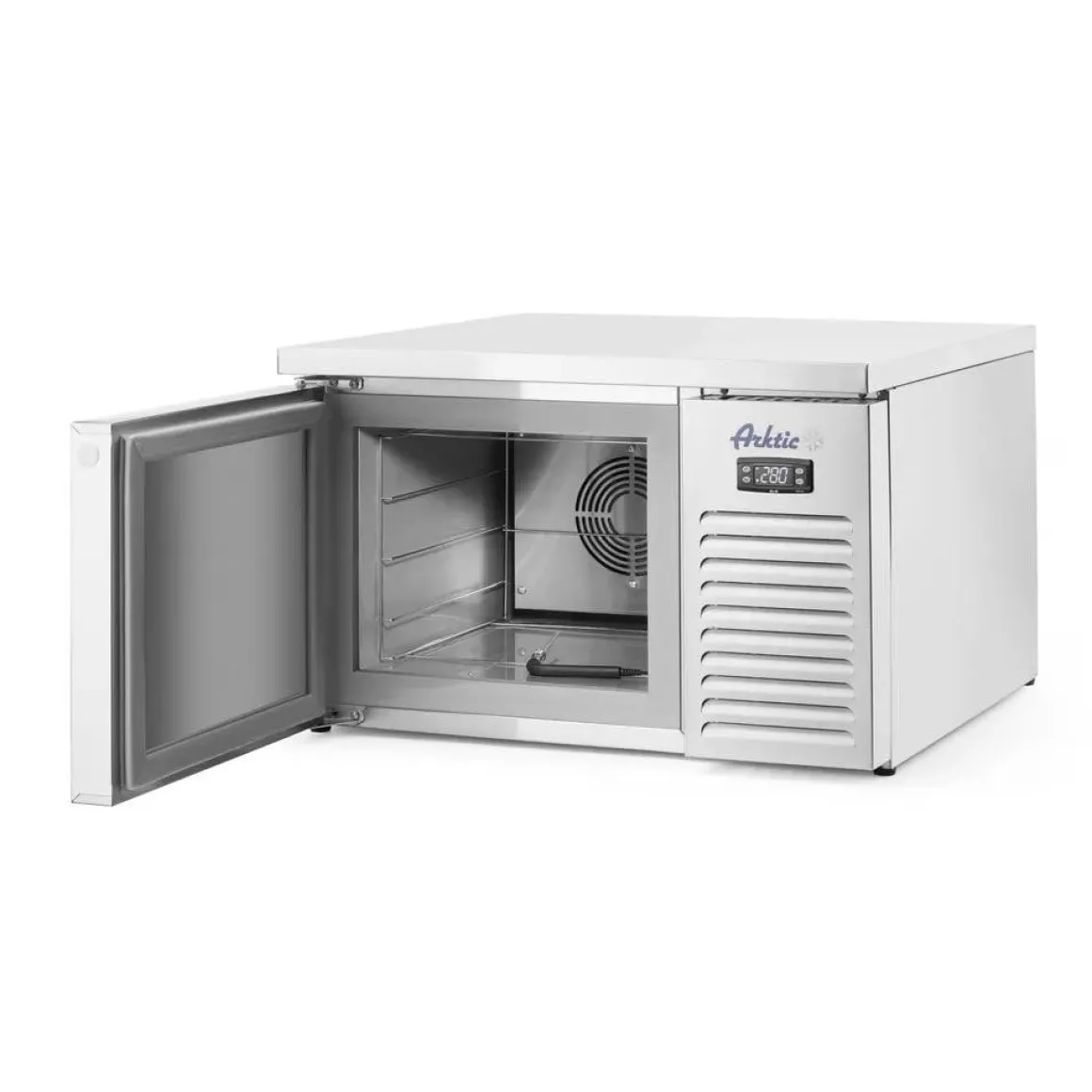 De 3xGN2/3 Arktic Shock Koeler is een compacte unit die perfect past bij de behoeften van kleine foodservice-outlets, restaurants en ijssalons.