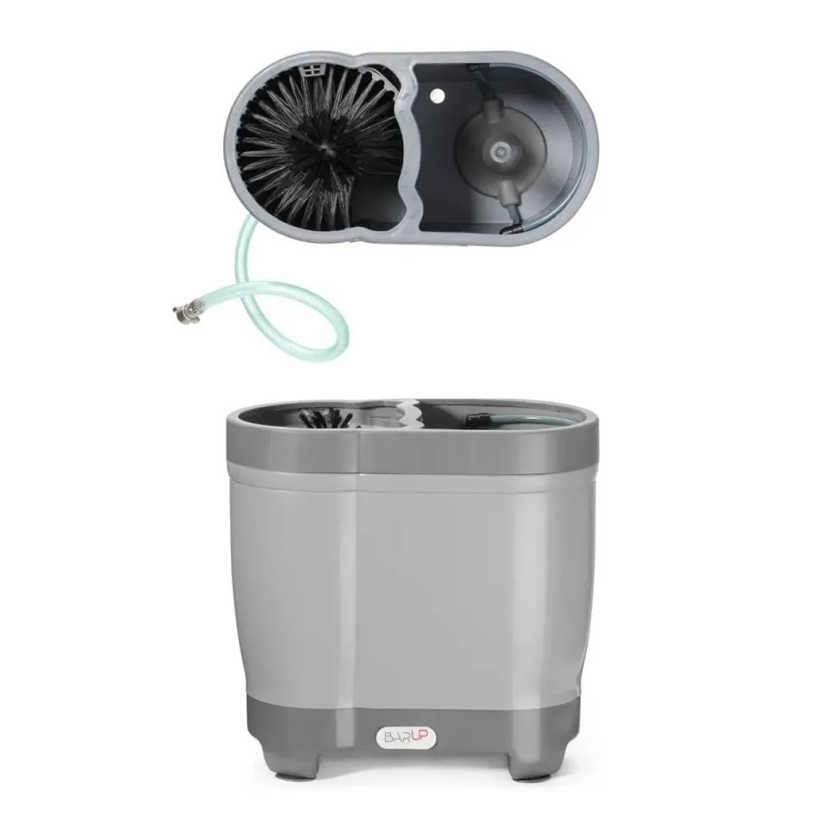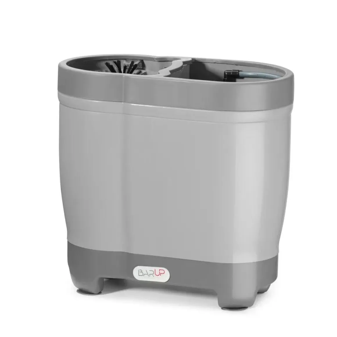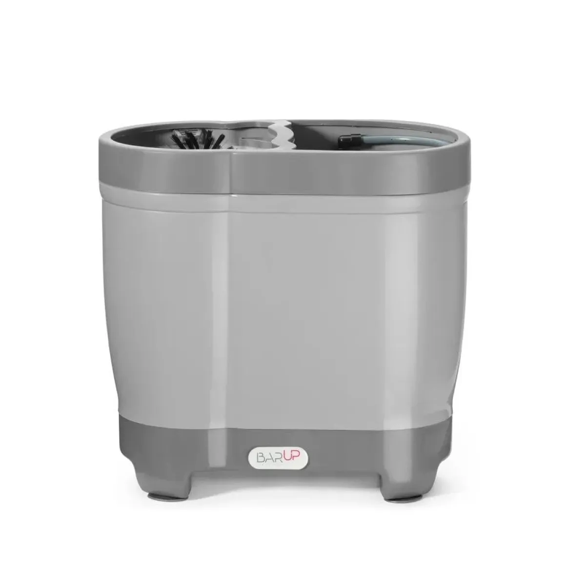 Voor zelfmontage, bedoeld voor plaatsing in de gootsteen. Uitermate geschikt om te gebruiken bij glazen met een diameter van 50-140 mm en een hoogte van max. 240 mm, inclusief Duitse Stein-bierglazen (met oor) of Engelse pintglazen. Deze uitvoering is vervaardigd uit polypropyleen. De middelste borstel is verwijderbaar. Uitgerust met een spoelsysteem in een van de containers – heeft jets voor het spoelen van glazen, spoelt tegelijkertijd de binnen- en buitenkant van glazen. Met directe wateraansluiting – was glazen efficiënt in koud water (onder 30°C). Met een overloop – handig wanneer overtollig water over de borstels komt. Uitgerust met 4 zuigvoeten van PVC, voor stabiliteit. Inbegrepen in de set: 3/8” watertoevoerslang met een lengte van 70 cm.
