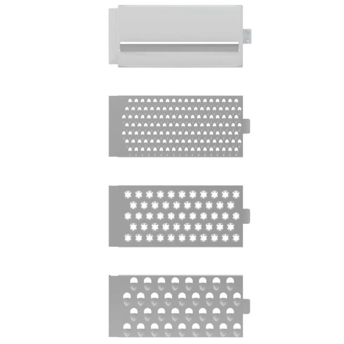Gebruik de mandoline om plakjes komkommer te snijden, kaas te raspen of om diverse andere groente te raspen. De mandoline wordt geleverd met 4 messen en een opvangbakje.