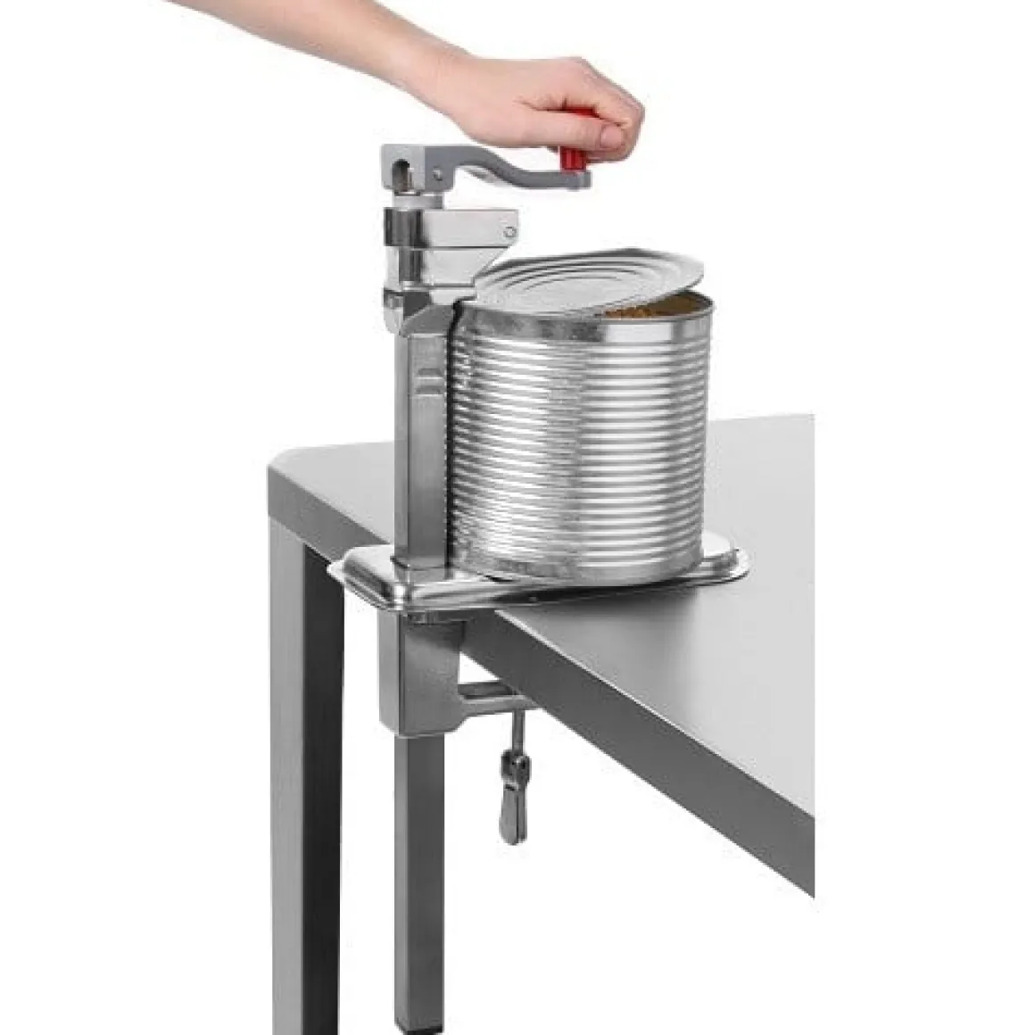 Staartbusopener tafelmodel van het merk Hendi. De blikopener kan worden bevestigd middels een duimschroef. De staartbusopener is geschikt voor blikken tot 40 cm en is gemakkelijk schoon te maken. Het vervangen van het mes of wiel kan eenvoudig en snel zonder gereedschap.