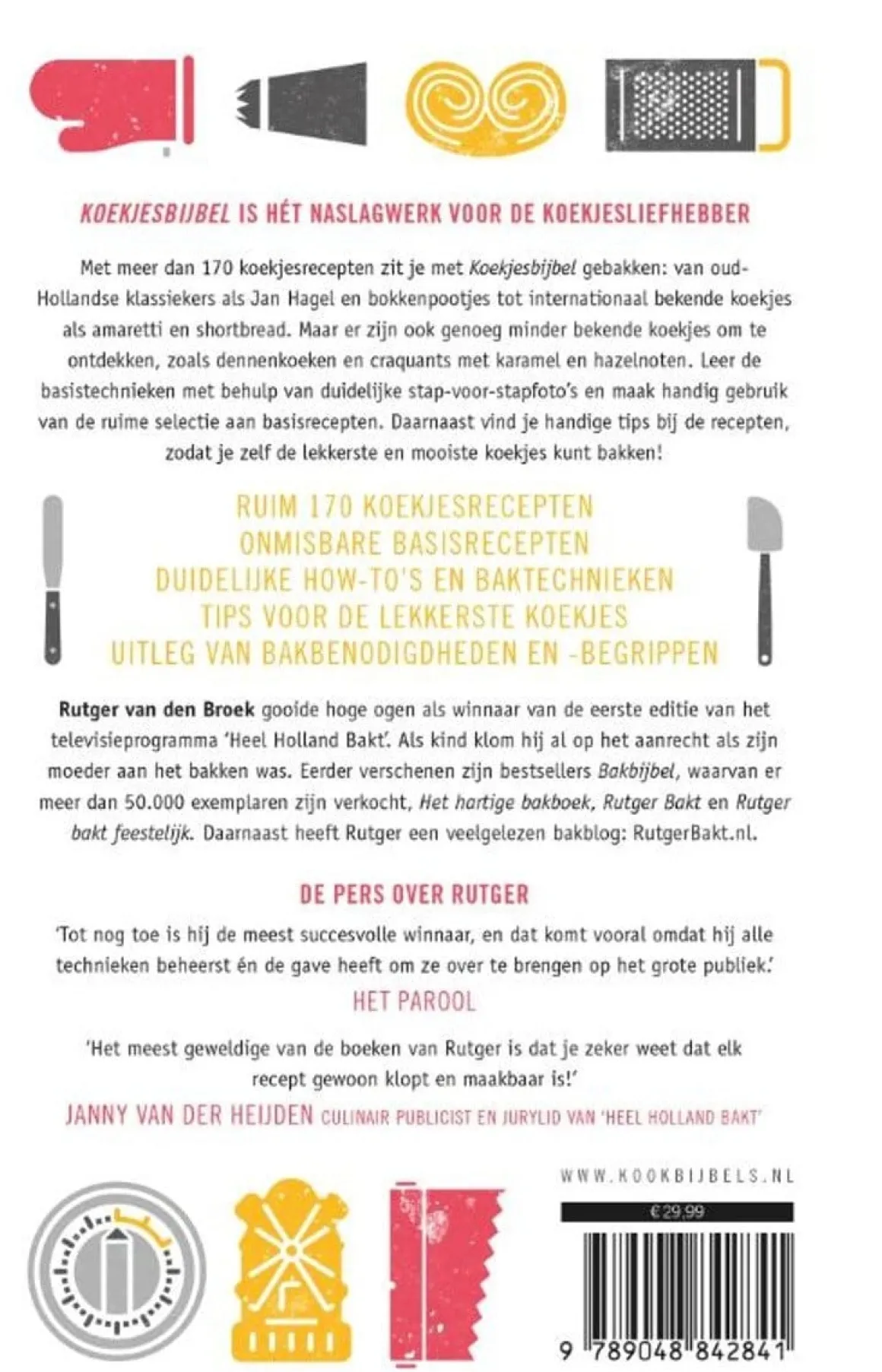 Met meer dan 170 koekjesrecepten zit je met Koekjesbijbel gebakken: van oud-Hollandse klassiekers als Jan Hagel en bokkenpootjes tot internationaal bekende koekjes als amaretti en shortbread. Maar er zijn ook genoeg minder bekende koekjes om te ontdekken, zoals dennenkoeken en craquants met karamel en hazelnoten. Leer de basistechnieken met behulp van duidelijke stap-voor-stapfoto’s en maak handig gebruik van de ruime selectie aan basisrecepten. Daarnaast vind je praktische tips bij de recepten, zodat je zelf de lekkerste en mooiste koekjes kunt bakken!