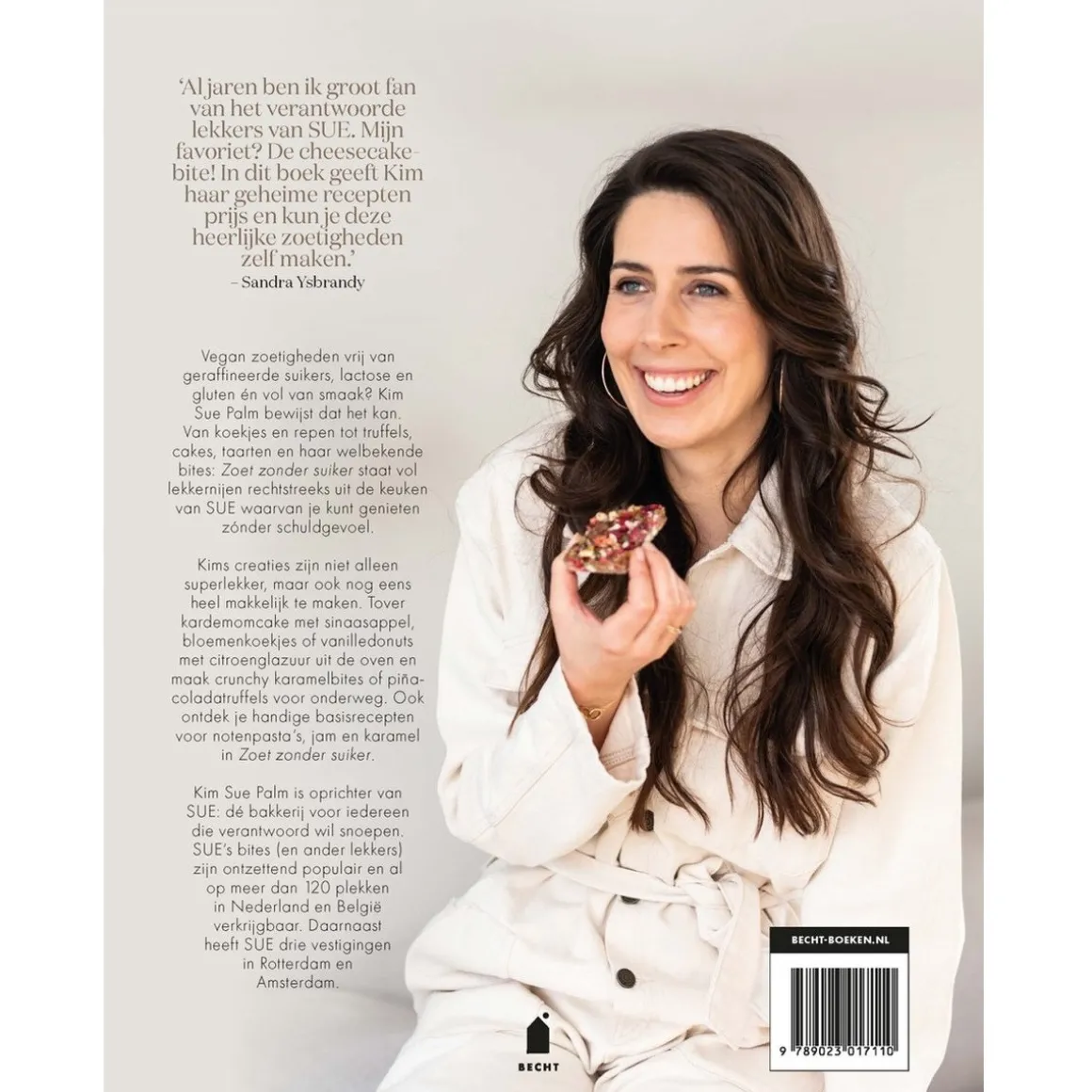 In ‘Zoet zonder suiker’ bewijst Kim Sue Palm dat zoet net zo lekker kan zijn zonder geraffineerde suikers, lactose en gluten. In dit prachtige bakboek vind je de recepten voor haar welbekende vierkante bites en andere zoete lekkernijen, die verkrijgbaar zijn op meer dan 120 plekken in Nederland en België. In ‘Zoet zonder suiker’ ontdek je hoe lekker zoetigheden zonder suiker kunnen zijn: van smakelijke bites en koekjes tot repen, cakes en truffels. Duik de keuken in en bak zelf crumblerepen met bosbessen of maak een shortbread met karamel. Verwen je gasten met cheesecake-bites met witte chocolade of avocado-bites met chocolade en pistache. Met de hulp van SUE’s fijne receptuur maak je met ‘Zoet zonder suiker’ de lekkerste zoete baksels die je zoete trek op een verantwoorde manier kunnen stillen. Zoet zonder suiker, het kan écht!