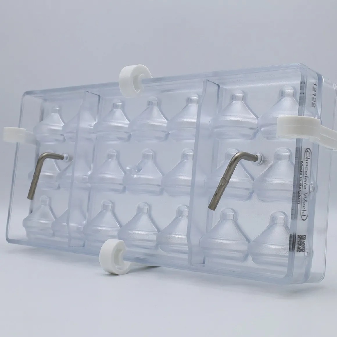 De vorm is ook geschikt voor het maken van dubbele bonbons, dus een hele Tajine. Hiervoor heb 2 bonbonvormen, 4 klemmen en 2 pennen nodig van Chocolate World. Deze worden NIET meegeleverd, maar zijn los verkrijgbaar.