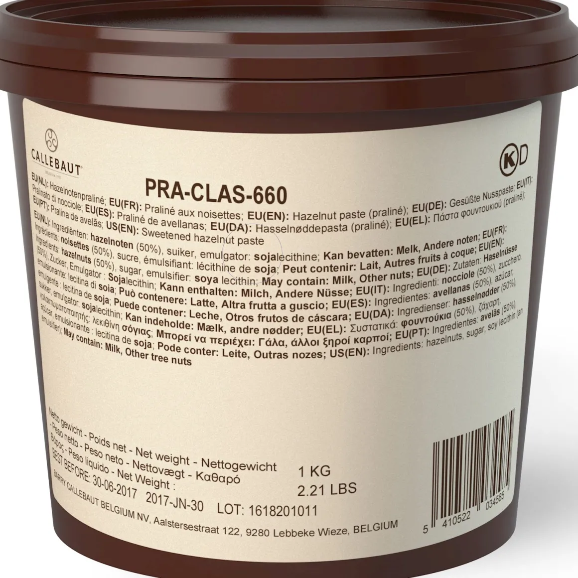 Callebaut Hazelnoot Praline Notenvulling is een zeer fijne hazelnootpraliné (50% hazelnoot, 50% suiker). Callebaut hazelnoot praline is gemaakt van de best geselecteerde hazelnoten. De Callebaut Hazelnoot Praline Notenvulling is verpakt in een hersluitbare emmer.