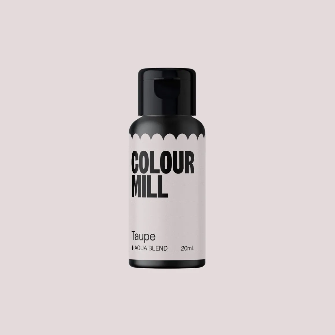 Colour Mill Aqua Blend Kleurstof Taupe 20ml heeft een prachtige taupe kleur. Taupe is een kleur die tussen grijs en bruin inzit. De kleurstof is gemaakt op waterbasis, dat betekent dat deze gebruikt kan worden voor het kleuren van producten die gevoelig zijn voor vet en olie. Zo kun je deze kleurstof gebruiken voor het kleuren van macarons en meringues. Ook voor het kleuren van royal icing en fondant is de kleurstof ideaal. Aqua blends zijn NIET geschikt voor vette producten, zoals chocolade, cakebeslag en candy melts. Daarvoor kun je het beste de oil blends van Colour Mill gebruiken.
