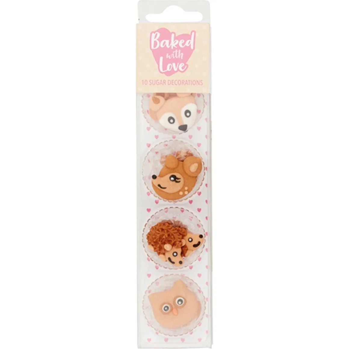 De Culpitt Suikerdecoratie Bosdieren 10st bestaat uit suikerfiguren waarmee je perfect jouw zelfgemaakte taarten, cakes en cupcakes kunt versieren. De verpakking bevat 4 verschillende bosdieren, die van suiker zijn gemaakt. In totaal zitten er 10 decoraties in die elk ongeveer een diameter van 2,5 centimeter hebben. Met deze suikerfiguren kun je onder andere perfect baksels decoreren in het thema ‘Bos’ en ‘Herfst’.