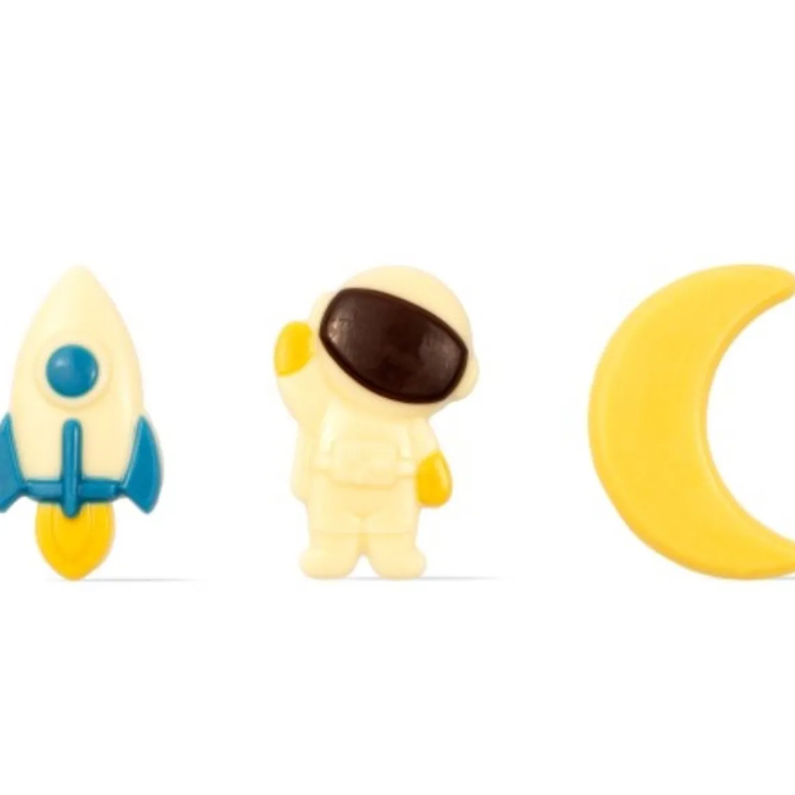 Het Dobla Chocoladedecoratie Galaxy Assortiment (141 stuks) bestaat uit chocoladedecoraties in 3 verschillende designs. Deze lekkernijen hebben allemaal te maken met de ruimte. De mix bestaat uit een raket, astronaut en een maan.