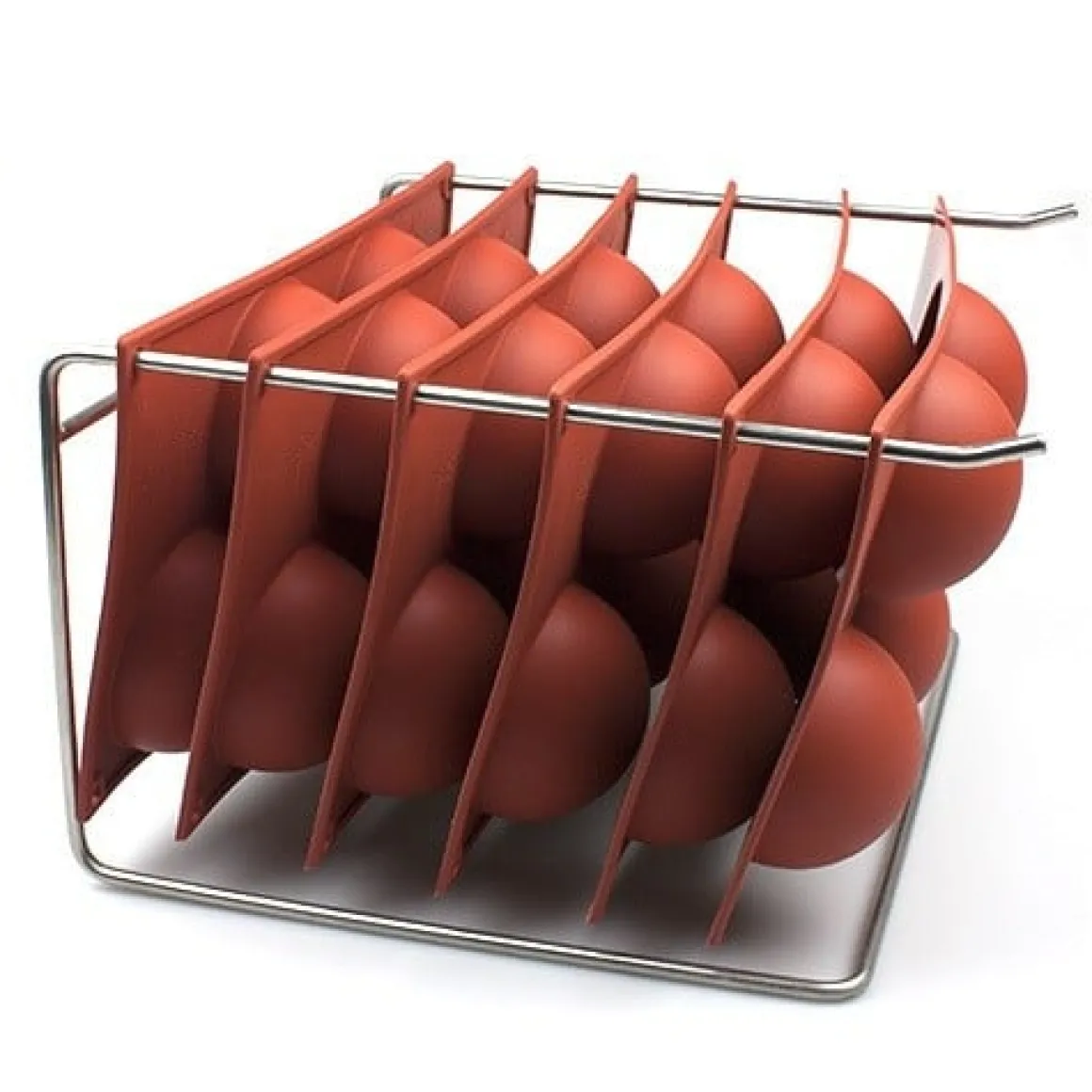 Het wordt aangeraden om siliconen bakvormen met de hand af te wassen. Het vervolgens laten drogen van de siliconen vormen gaat nu wel heel gemakkelijk met het speciaal ontworpen droogrek.