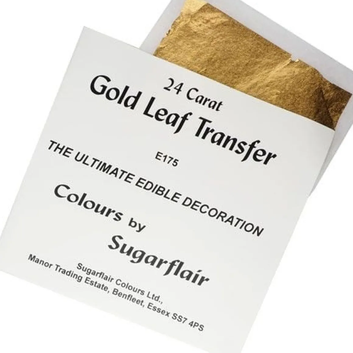 Knip met een schaar de gewenste vorm uit het goud-blad, zorg dat je overmatig contact met het bladgoud vermijd. Smeer het gekozen oppervlakte met een dun laagje eetbare-lijm of bijv. confectioner’s glaze. Tip: zorg dat het oppervlakte net iets groter is dan nodig. Plaats het blad voorzichtig en nauwkeurig. Let wel op, de sheet kan na het plaatsen niet meer verplaatst worden. Laat het een ongeveer een minuut met rust voordat je papier verwijderd met behulp van een bijvoorbeeld een pincet d.m.v. een langzame opwaartse beweging. Laat het ± 24u drogen om hard te worden.