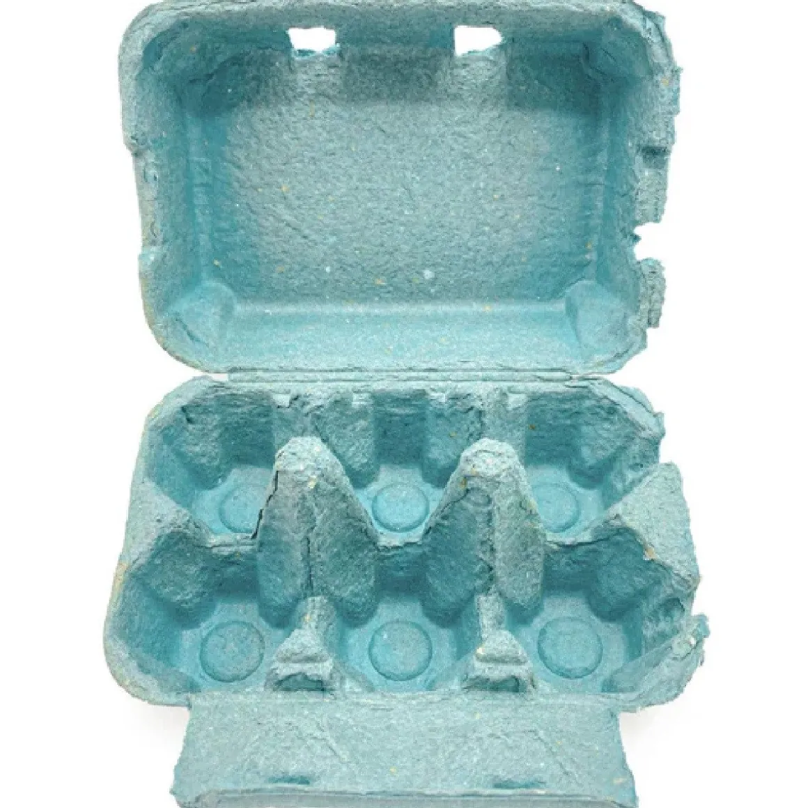 Het eierdoosje heeft een afmeting van ongeveer 10 bij 5 centimeter, is gemaakt van karton en komt in de kleur blauw.