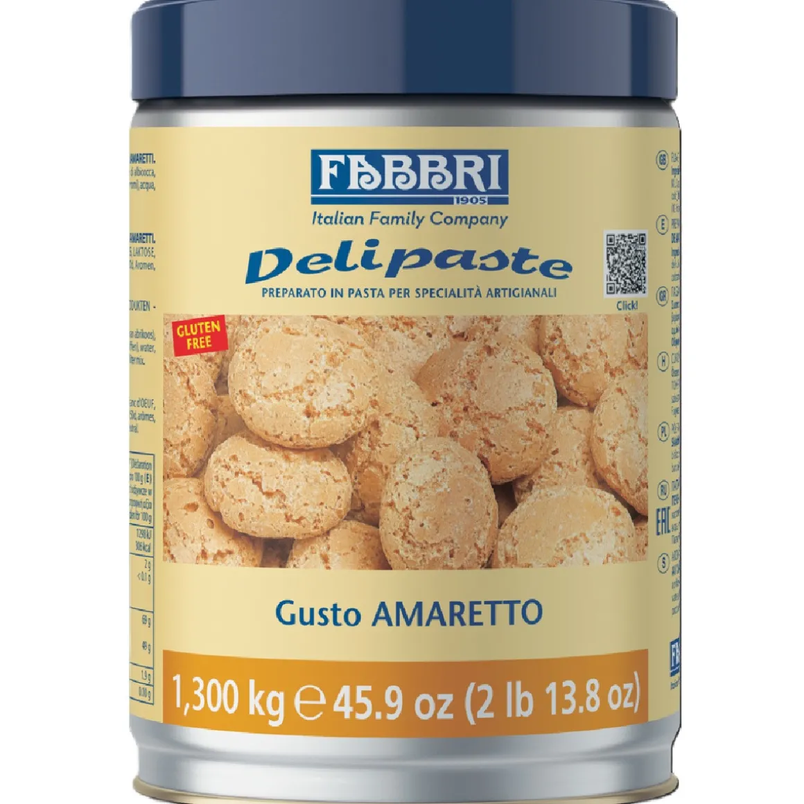 De Fabbri Delipaste Amaretto heeft een verfijnde smaak van amaretto in geconcentreerde pasta vorm. Deze smaakpasta heeft een zachte bitterzoete toets van amandelen en een subtiele hint van likeur.
