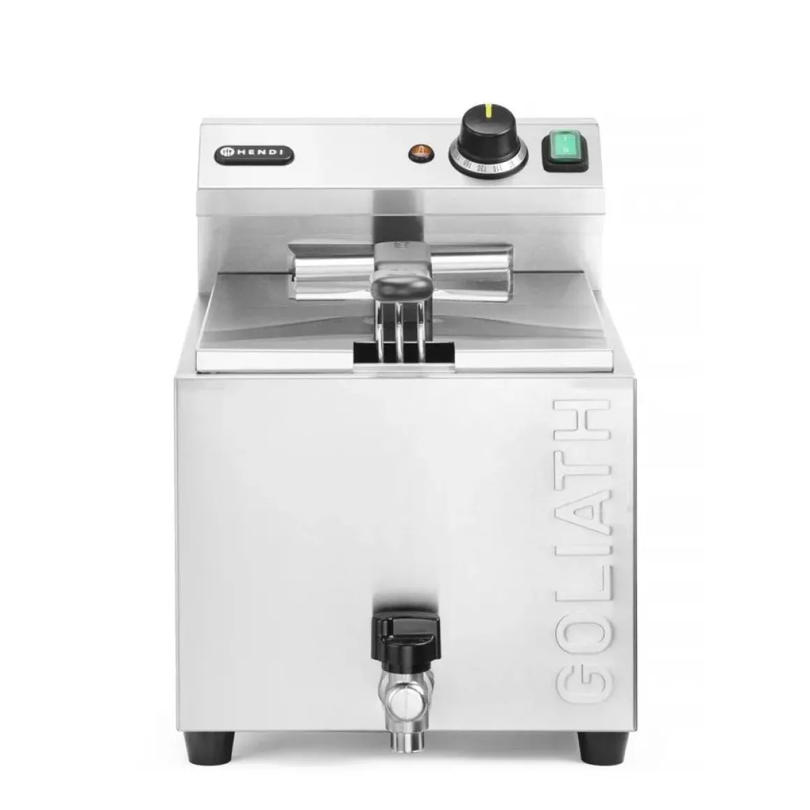Dankzij het doordachte ontwerp is dit apparaat uitermate geschikt voor Friteuse XL met aftapkraan HENDI GOLIATH – ontworpen voor ongeëvenaarde prestaties. Met een uitzonderlijk hoog vermogen van 10. 200 W, een aanzienlijke capaciteit van 10 liter en een extra sterk verwarmingselement bereidt deze frituurinstallatie op efficiënte wijze tot 1 kg friet in ongeveer 3 minuten, waardoor hij zich in zijn capaciteitsbereik als de ultieme krachtpatser kan vestigen.
