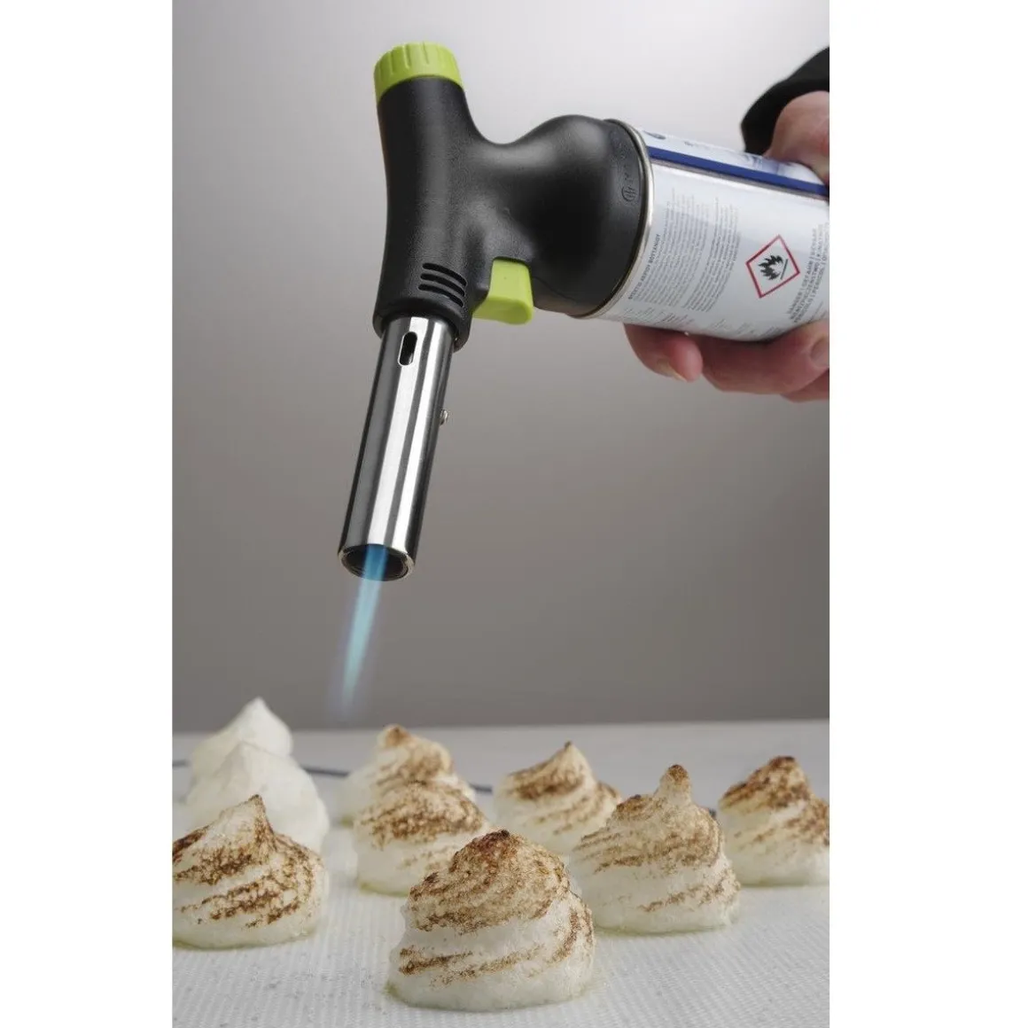 Professioneel ontworpen gasbrander door Robert Bronwasser. Deze stijlvolle brander heeft een ergonomische greep. De vlam is eenvoudig te onsteken d.m.v. van piëzo-onsteking, de grote gas-knop zorgt ervoor dat de grootte van de vlam gemakkelijk te regelen is. Deze brander kan onder welke hoek gebruikt worden (ook ondersteboven!), zonder dat de vlam gaat flakkeren.