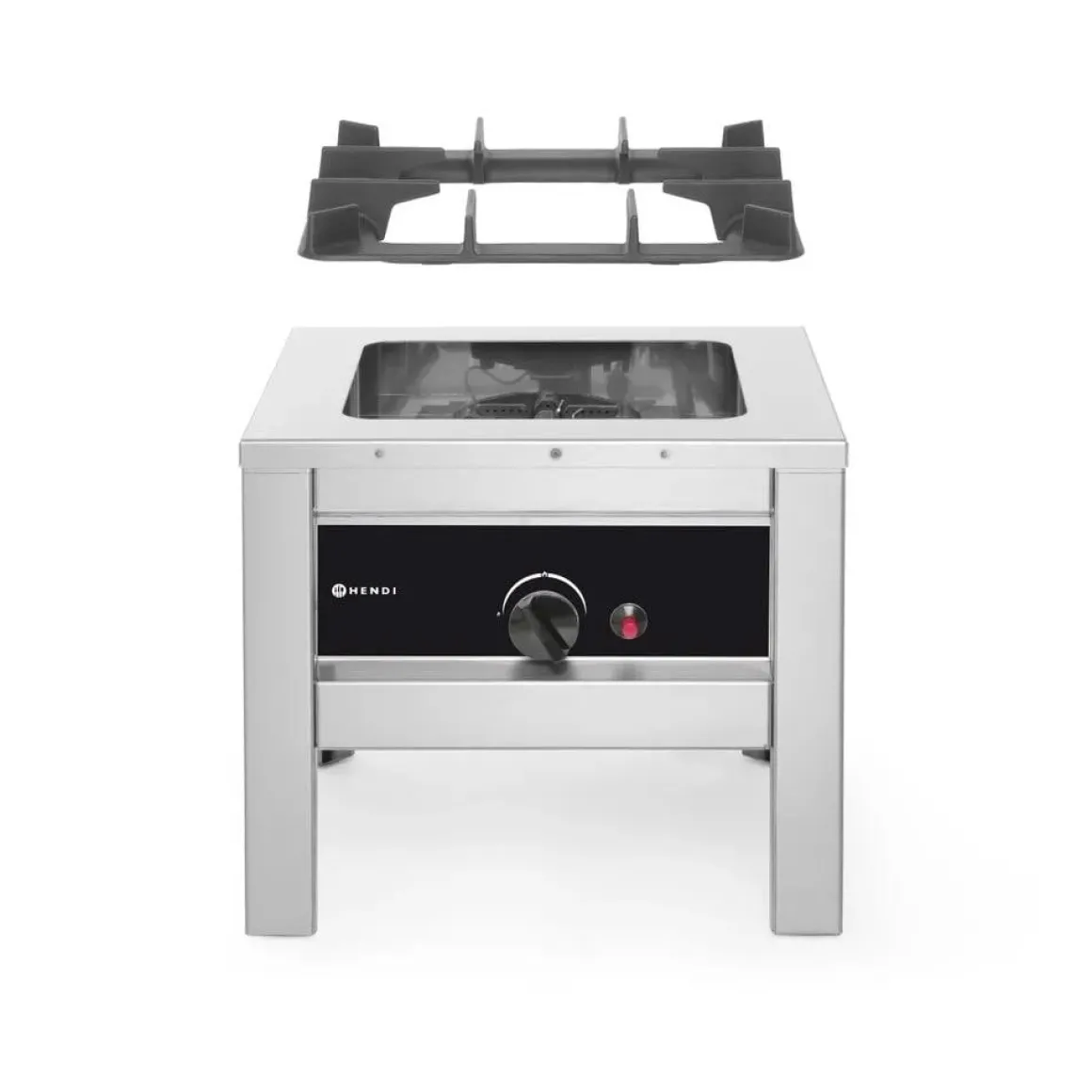 Voor propaan- en butaangas. Extra robuust roestvast stalen frame voor het dragen van zware lasten. Uitgerust met thermokoppel en elektronische ontsteking. Voorzien van geëmailleerde pandrager. Wordt compleet geleverd met gasslang en drukregelaar. Uit te breiden met onderstel (147306), wokring (147207) en wokpan (626504).