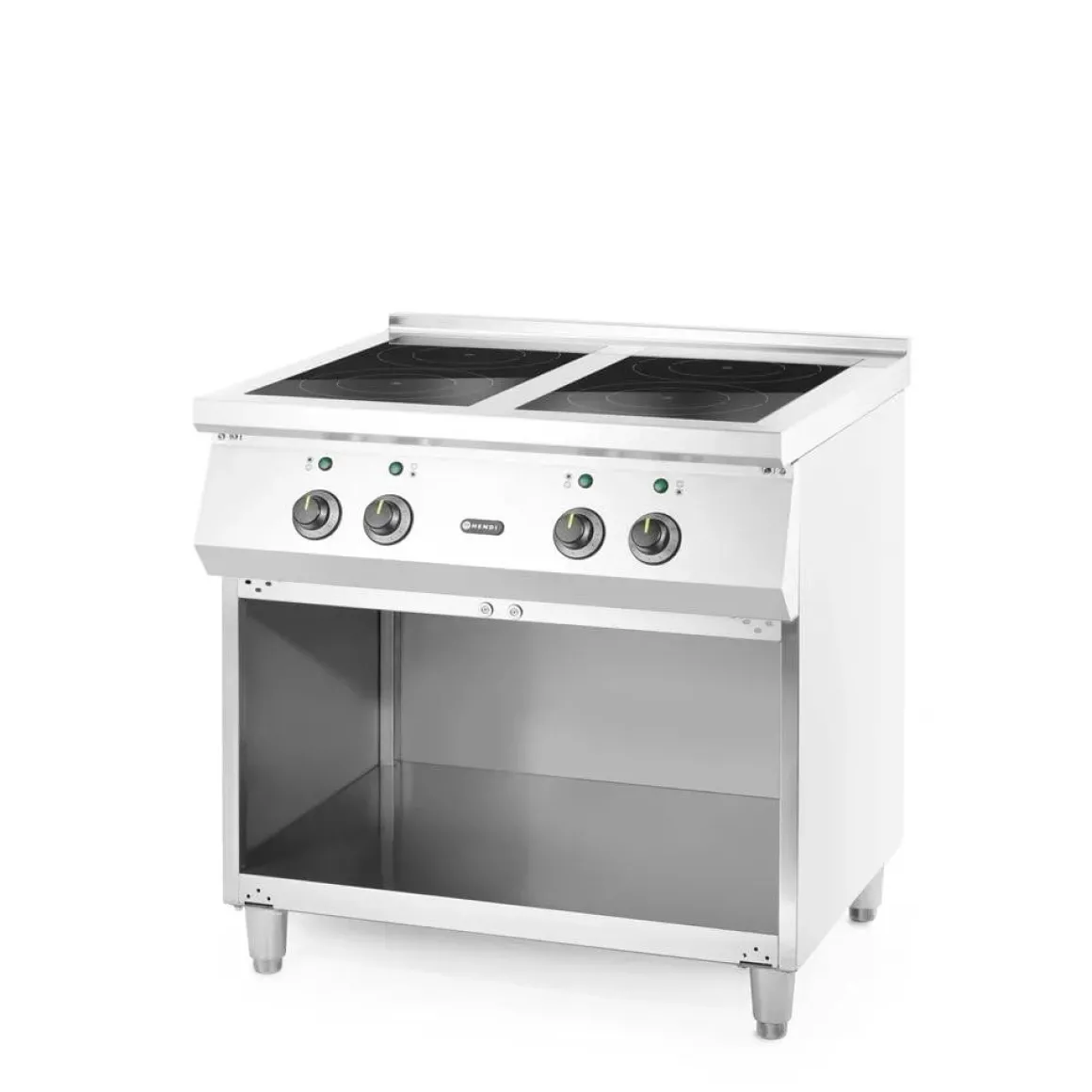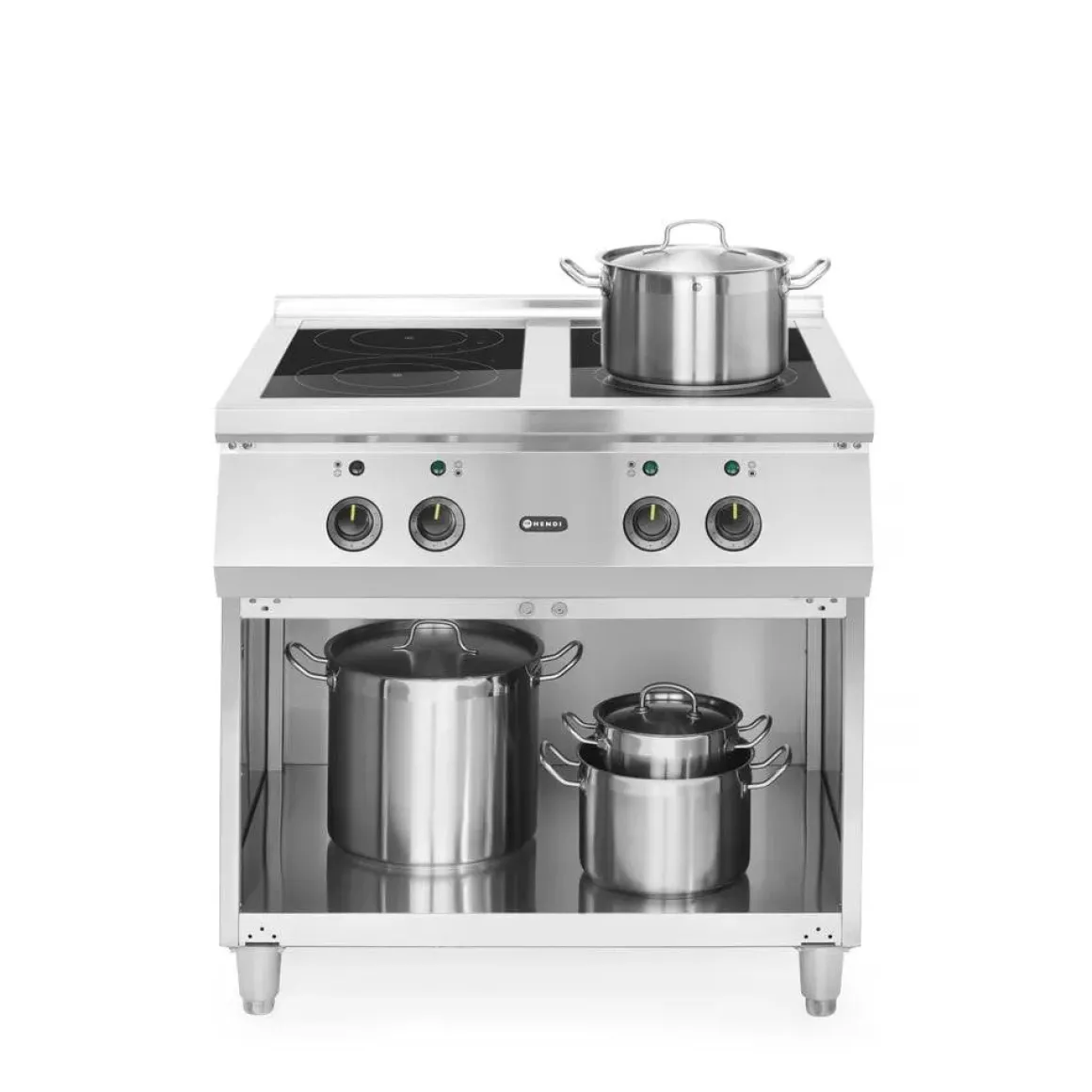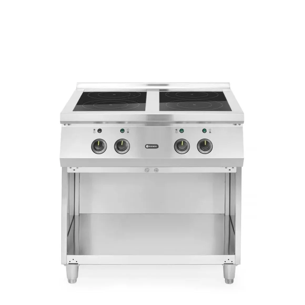 HENDI inductiefornuis 4-pits voldoet aan de verwachtingen van de meest veeleisende chef-koks. Hoog vermogen – dient aangesloten te worden op 400 V, het fornuis heeft twee inductiekookplaten van 5 kW en twee inductiekookplaten van 3,5 kW.