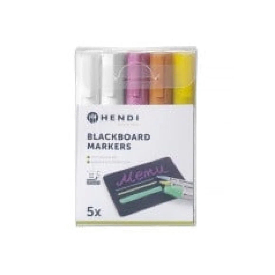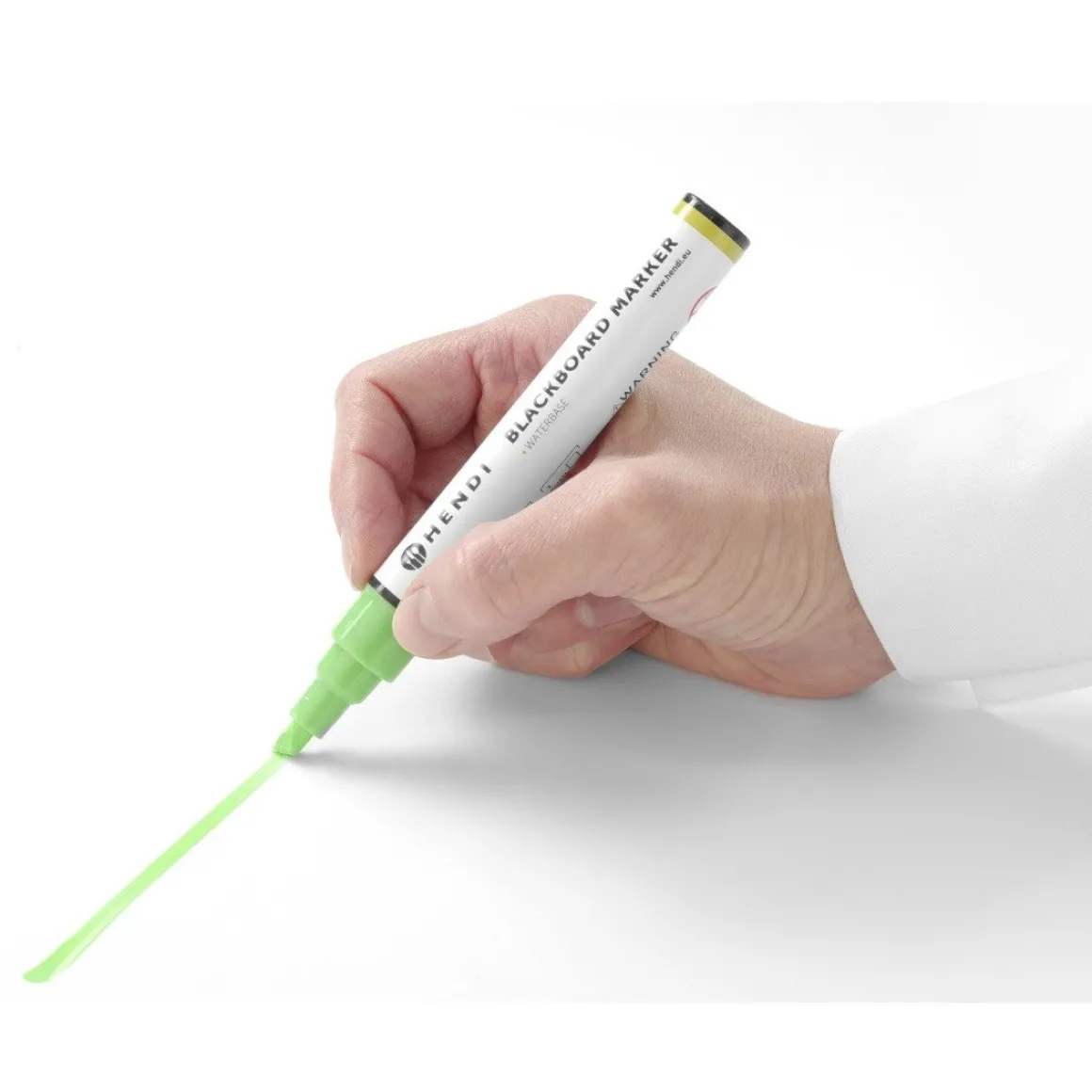 5 krijtstiften met schuine punt van het merk Hendi. Deze stiften zijn geschikt voor het schrijven op krijtborden.