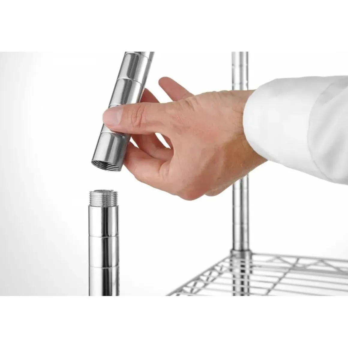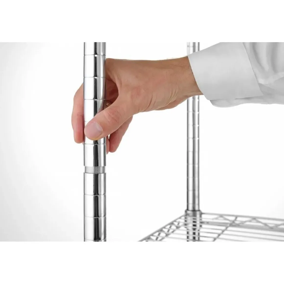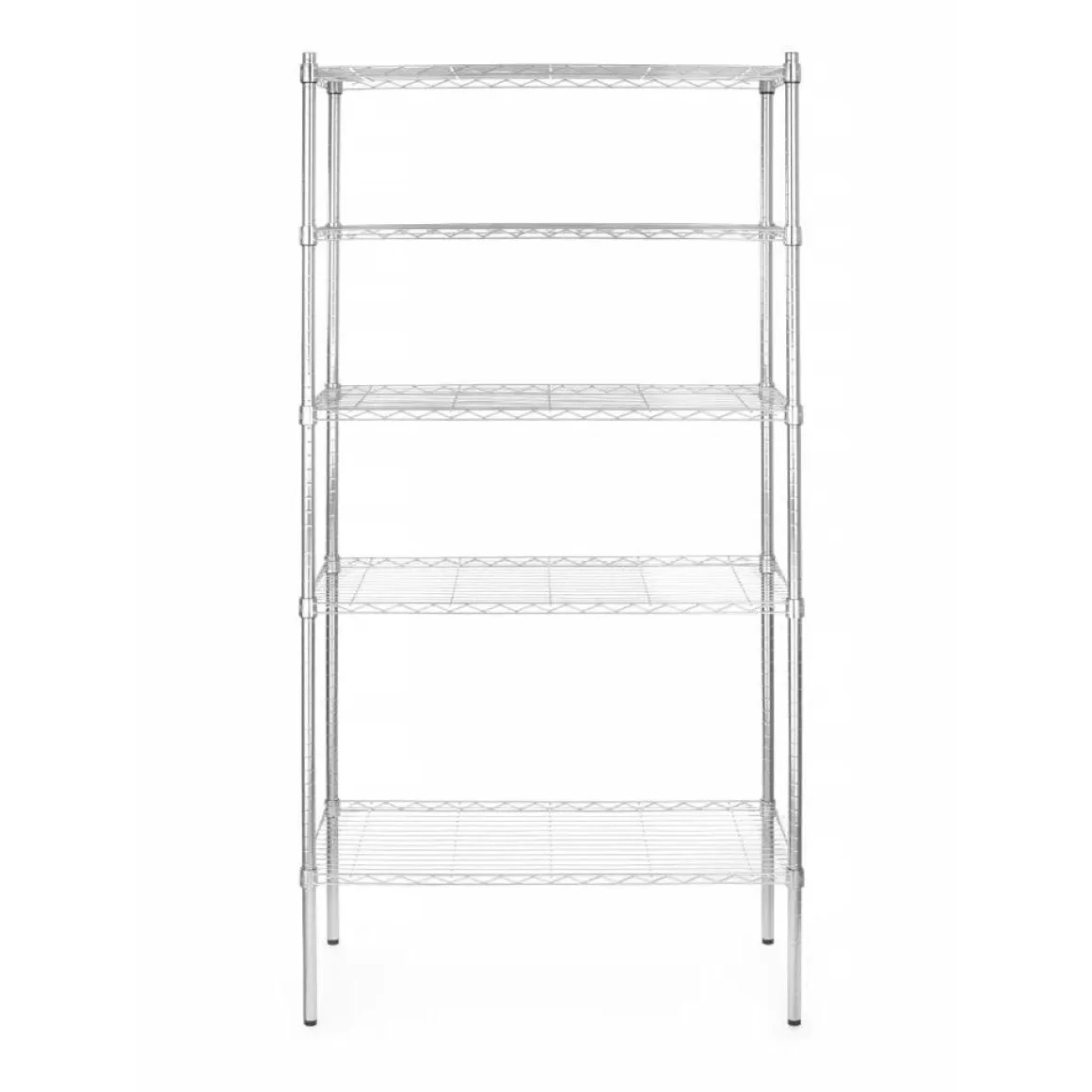 Deze uitvoering is vervaardigd uit Gemaakt van staal, verkrijgbaar in een verchroomde afwerking of een zwarte poedergecoate afwerking. Eenvoudig te monteren en de schaphoogte kan eenvoudig worden ingesteld. Geleverd met 5 draadschappen. Gespreide laadcapaciteit per schap: 80 kg. Uitgevoerd met verstelbare voeten.