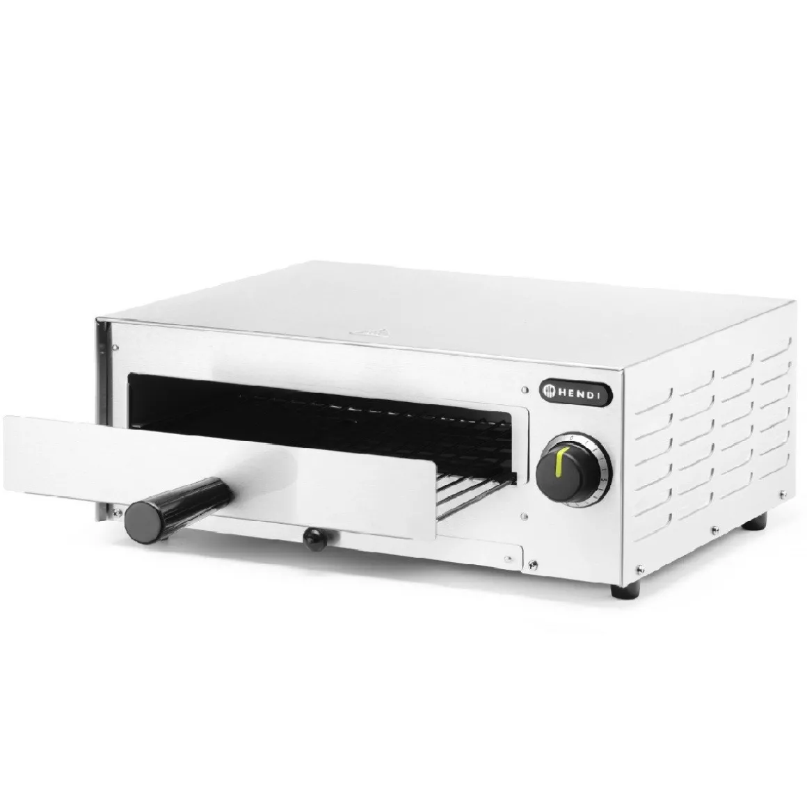 De Hendi Pizzaoven is een compacte pizzaoven met een laderooster. De oven kan gebruikt worden voor het bakken van pizza’s tot een diameter van 30 centimeter, ook voor het bakken van diepvriespizza’s is deze oven geschikt. Het verwarmen gebeurt door verwarmingselementen, die zich onder en boven bevinden. Onderaan de oven zit een opvanglade die de kruimels opvangt. Wil je deze schoonmaken? Dan kun je de lade er gemakkelijk uithalen.