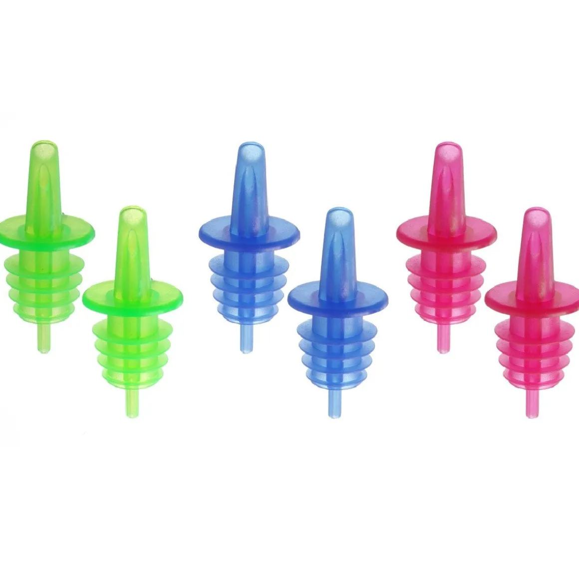 De set bevat 6 schenktuiten in 3 vrolijke kleuren: blauw, rood en groen.