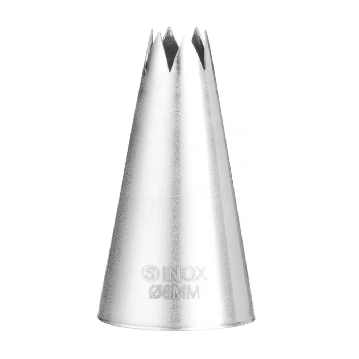 De Hendi Spuitmondjes Ster Set/7 is gemaakt van hoogwaardig RVS en bevat verschillende maten stervormige mondjes. Ze zijn sterk, gaan lang mee en zijn eenvoudig te reinigen, waardoor ze keer op keer weer gebruikt kunnen worden bij het decoreren.
